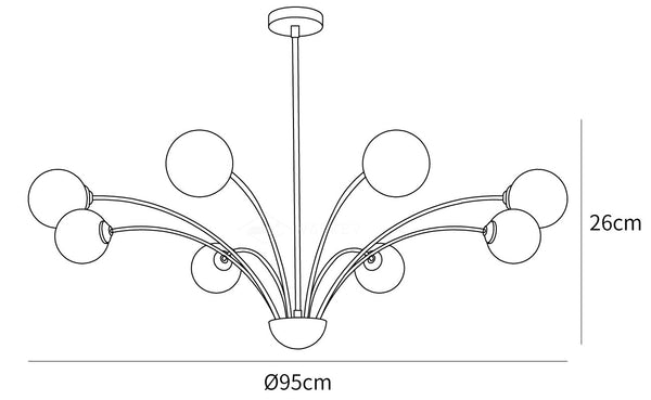 من المؤكد أن ثريا Millender هذه ستدلي ببيان فوق غرفة المعيشة الخاصة بك. يعرض ثمانية أذرع في اتجاهات مختلفة. يحتوي كل ذراع على غطاء زجاجي على شكل كرة أرضية في النهاية يوزع الضوء الناعم والدافئ. تخلق الظلال الزجاجية غير الشفافة/البيضاء المقترنة بالهيكل المعدني باللون الذهبي جوًا عصريًا وخالدًا في منزلك.