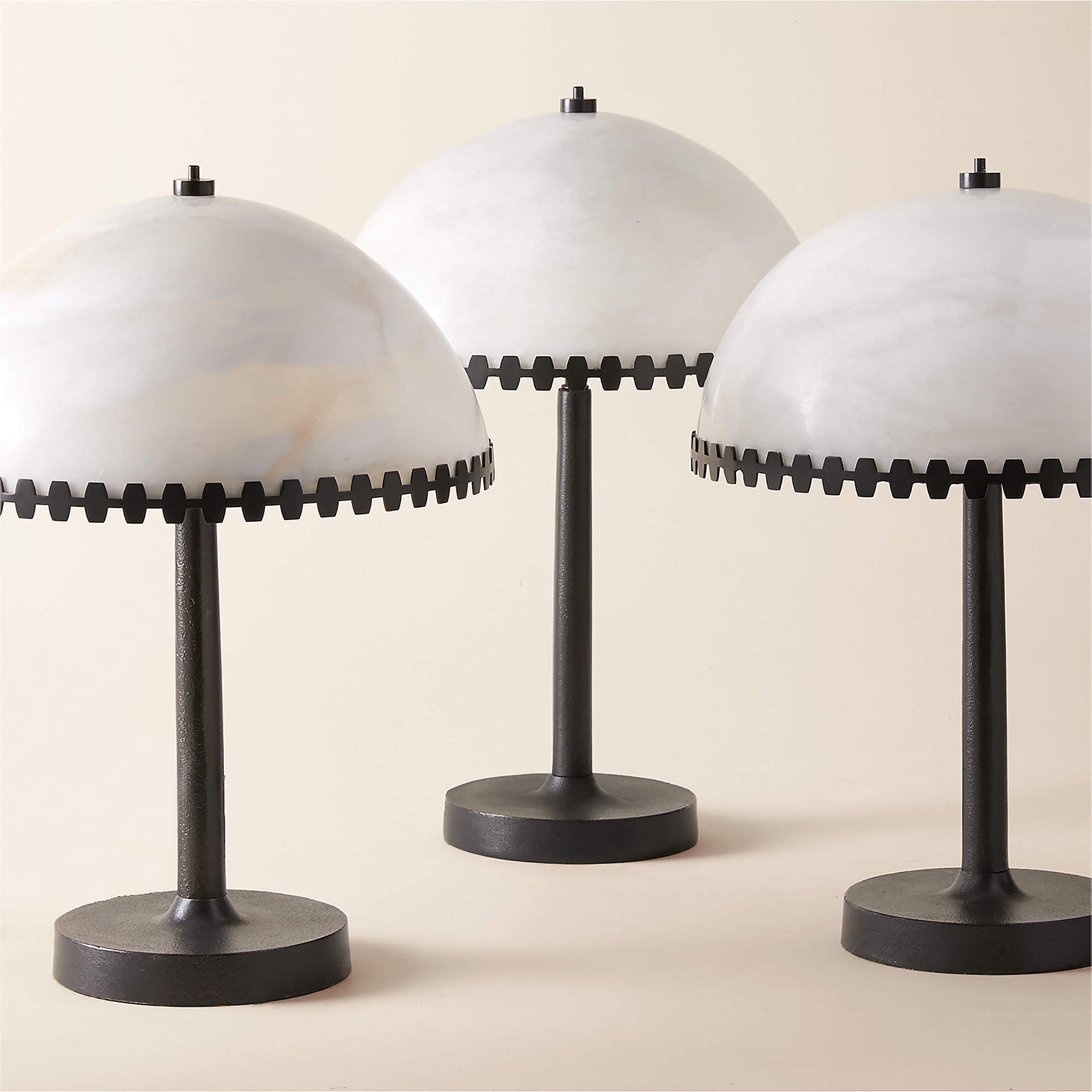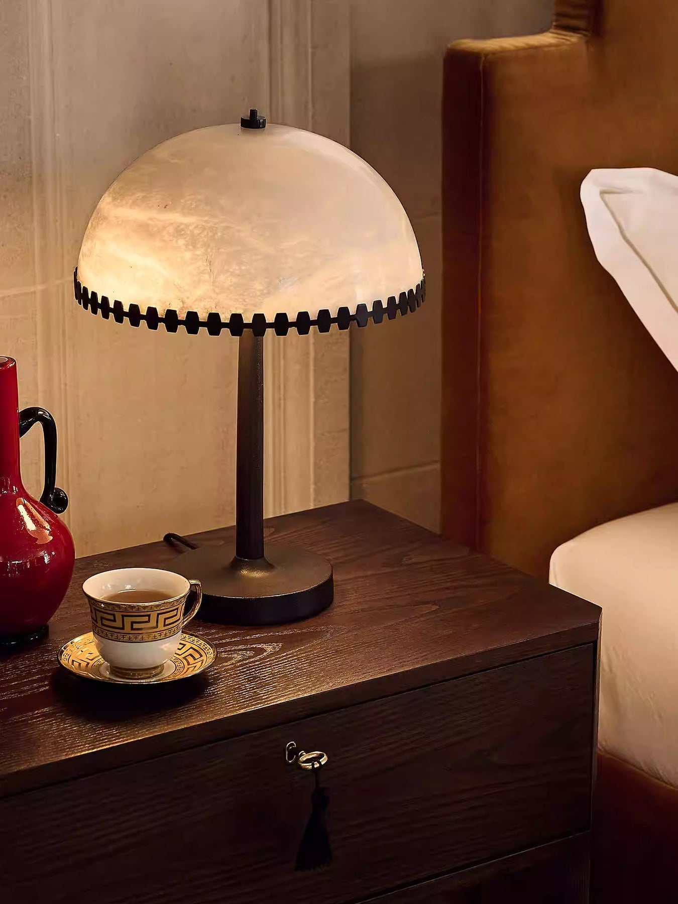The Lunarra Dome Table Lamp by Vakkerlight blends celestial softness with architectural detail. Its half-sphere alabaster shade glows with gentle, cloud-like veining—each piece naturally unique—creating a warm, atmospheric light that elevates any interior.