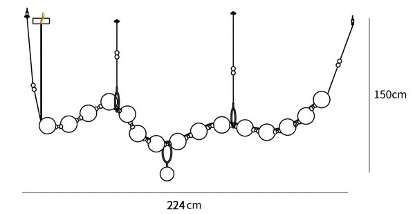 تستحضر القلادة هذا التقاطع المرن والأنيق والرائع بين المجوهرات والضوء. مثل سلسلة من اللؤلؤ، يمكن ترتيب الكرات الزجاجية العشرة المنفوخة يدويًا لهذا المصباح في عدة تكوينات للتكيف مع المكان الذي سيتم الإعجاب به. فهذه الجوهرة المضيئة عبارة عن ثقل موازن وخطاف يمكن إضافتهما أو نقلهما من "لؤلؤة" إلى أخرى، مما يوفر كل المرونة اللازمة للمصباح ليناسب مساحته بشكل مثالي.