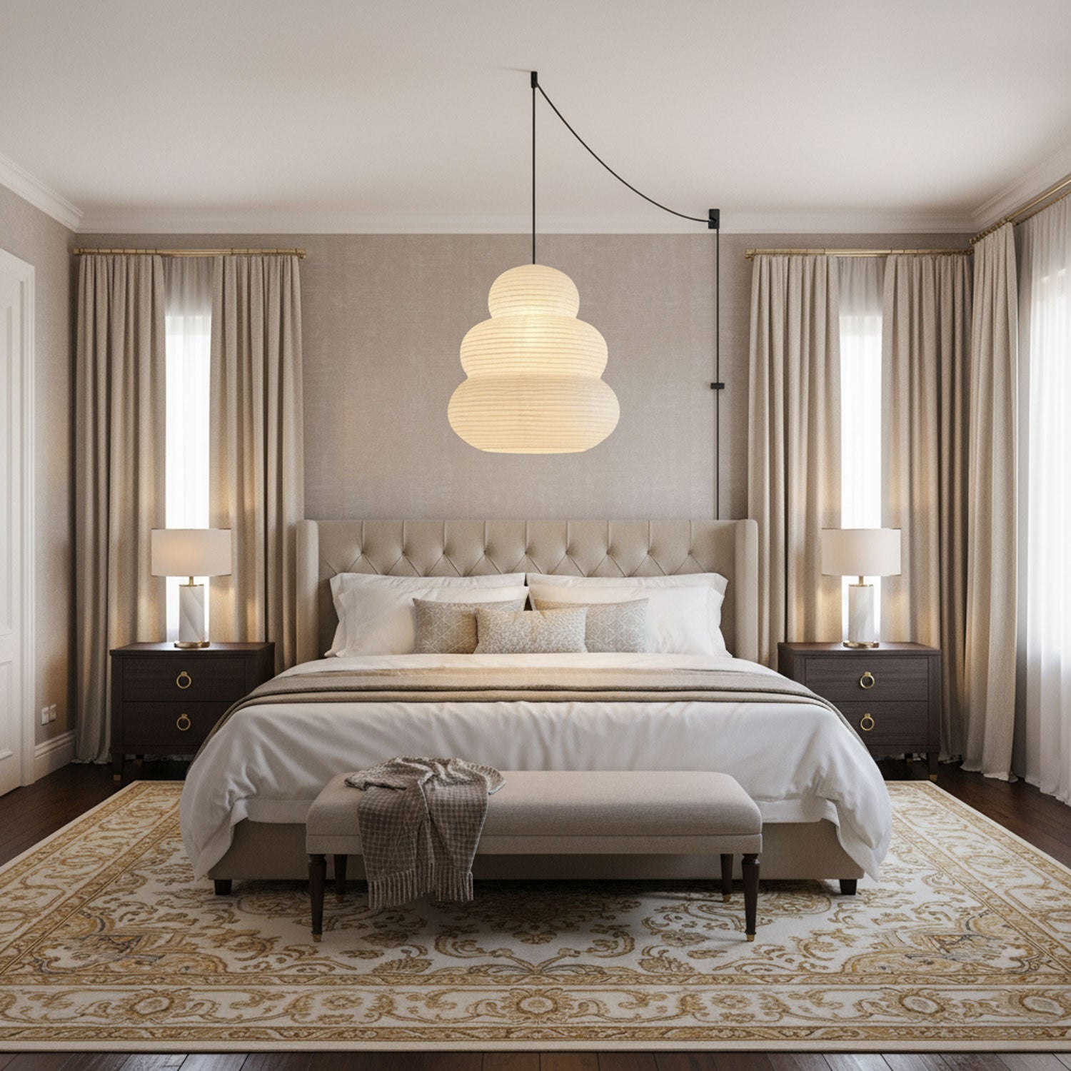 This rice paper pendant light is absolutely stunning! It adds a serene, zen-like atmosphere to my living room. The light it emits is soft and warm, perfect for creating a cozy ambiance. The design is unique and elegant, fitting perfectly with my minimalist decor. Installation was straightforward, and the quality is excellent. I highly recommend this light fixture for anyone looking to add a touch of elegance to their home!