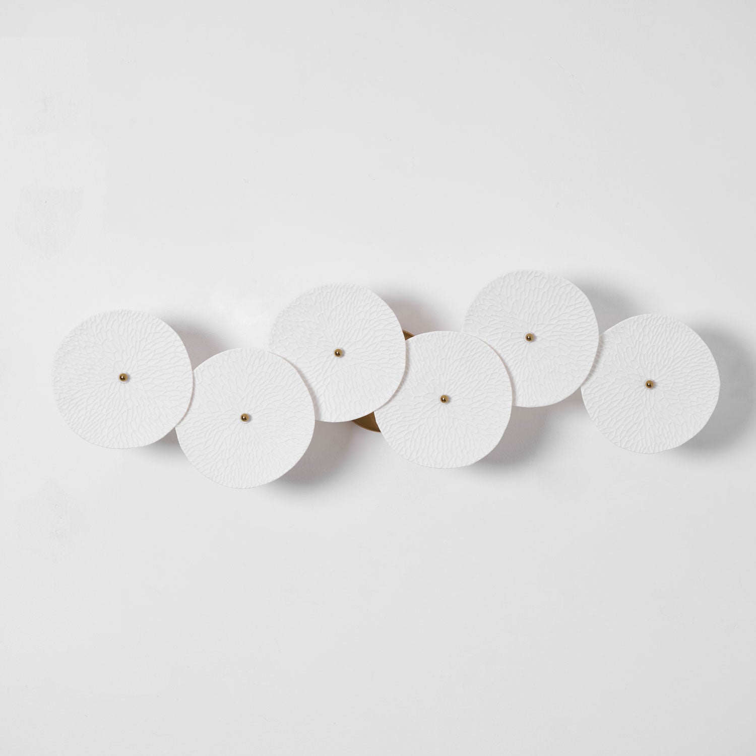 Experience the calming influence of nature with the Lotus Petal Wall Lamp. This graceful lighting fixture features a series of ceramic petals, each masterfully crafted to mirror the intricate patterns and textures found in the petals of a lotus flower. Arranged in a vertical cascade, the petals are connected by a lustrous metal spine that traces a path of beauty on your wall.