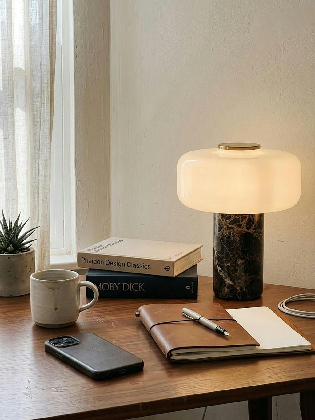 The Maris Rechargeable Marble Table Lamp combines sculptural elegance with intelligent design. Its weighty marble base anchors any surface with understated sophistication, while the opal glass shade diffuses light into a warm, enveloping glow ideal for reading or ambient evening settings. Cordless convenience means you can position it anywhere—bedroom nightstand, living room side table, or office desk—without hunting for outlets. The lamp performs double duty as functional illumination and curated décor, commanding attention whether switched on or off. A refined choice for those who refuse to compromise between form and function.