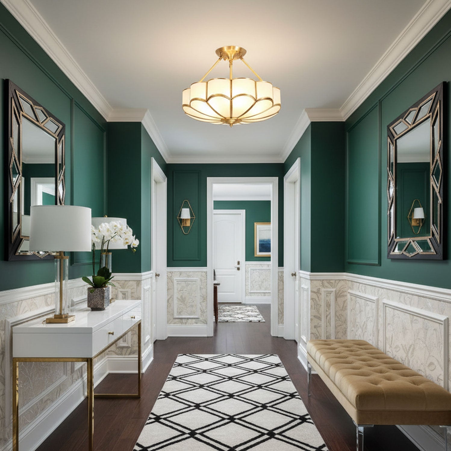 الثريات: يُعد مدخل المنزل المكان المثالي لثريا مميزة. استخدم صيغة الطول + العرض لتحديد القطر، وتأكد من تعليق التركيب على ارتفاع 7 أقدام على الأقل من الأرضية للسماح بمساحة كافية.