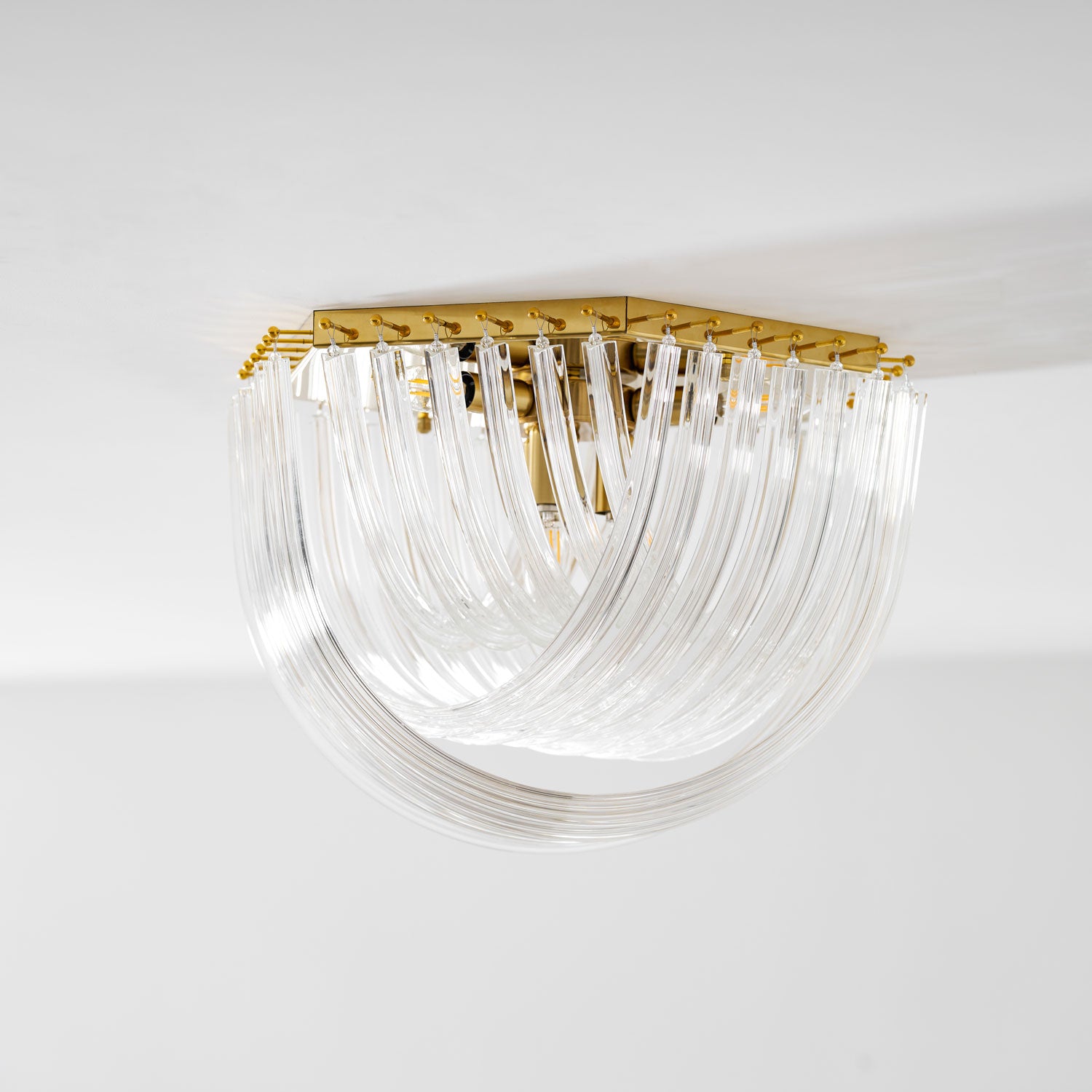 Elevate your interior with the Trevi Murano Ceiling Lamp. This exquisite Gold finished chandelier exudes Art Deco glamour, adorned with sculptural glass drops that reflect light from within. Transform your space with this timeless and luxurious piece, adding a touch of vintage elegance.