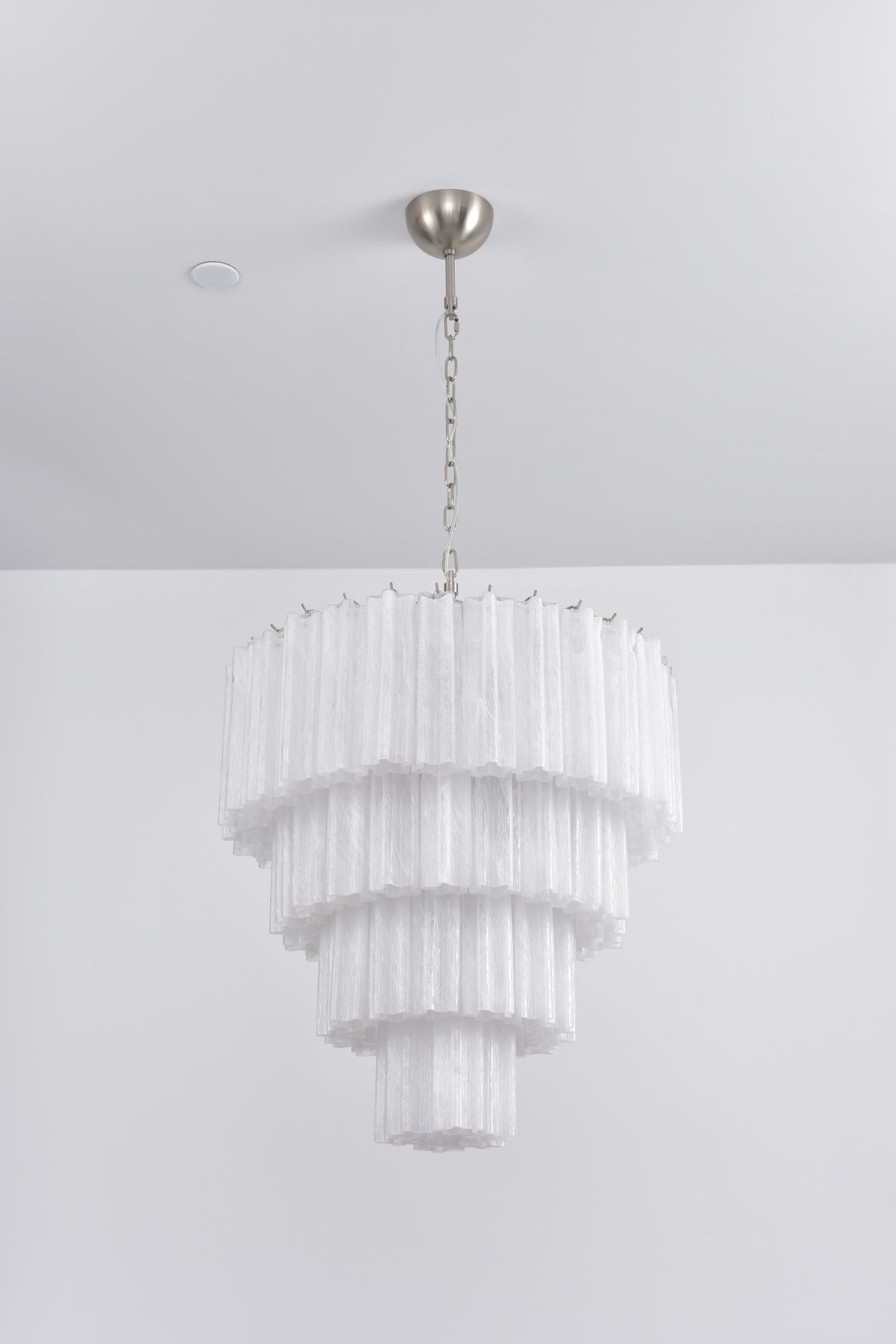 Experience elegance and luxury with the Virella Murano Cascade Chandelier. Handcrafted with multiple layers of Murano-inspired glass, each layer creates a stunning visual rhythm of light and texture. The vintage-inspired metal frame adds a touch of modernity, making it the perfect choice for sophisticated lobbies, dining areas, or boutiques.