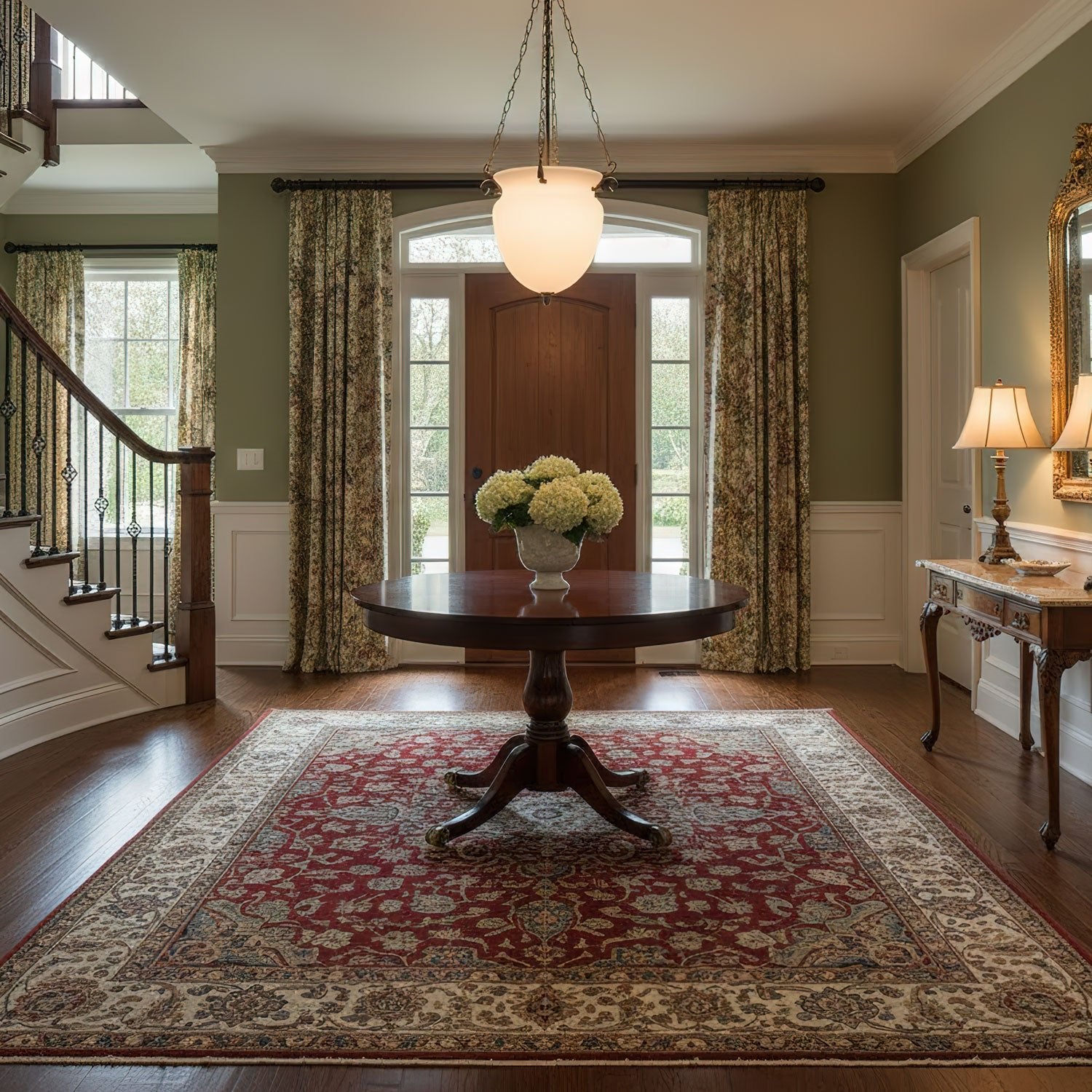الثريات: يُعد مدخل المنزل المكان المثالي لثريا مميزة. استخدم صيغة الطول + العرض لتحديد القطر، وتأكد من تعليق التركيب على ارتفاع 7 أقدام على الأقل من الأرضية للسماح بمساحة كافية.