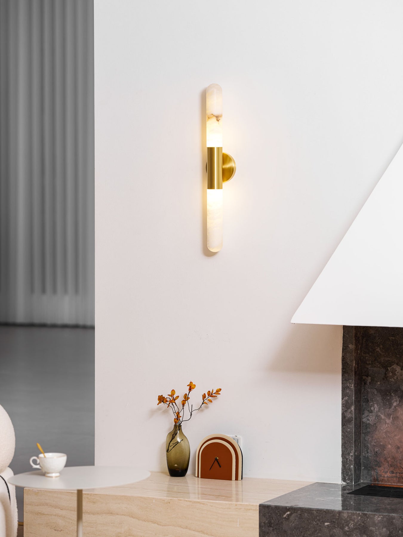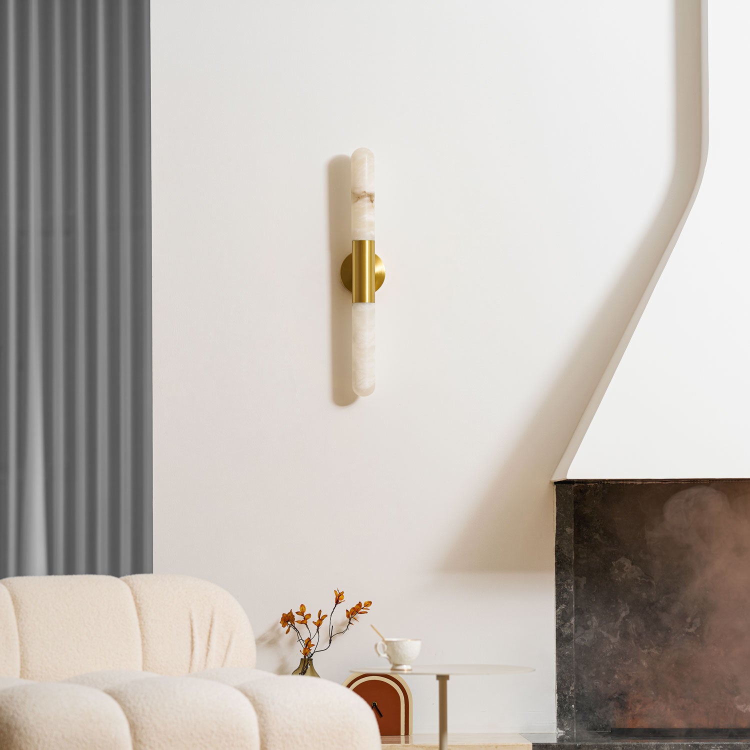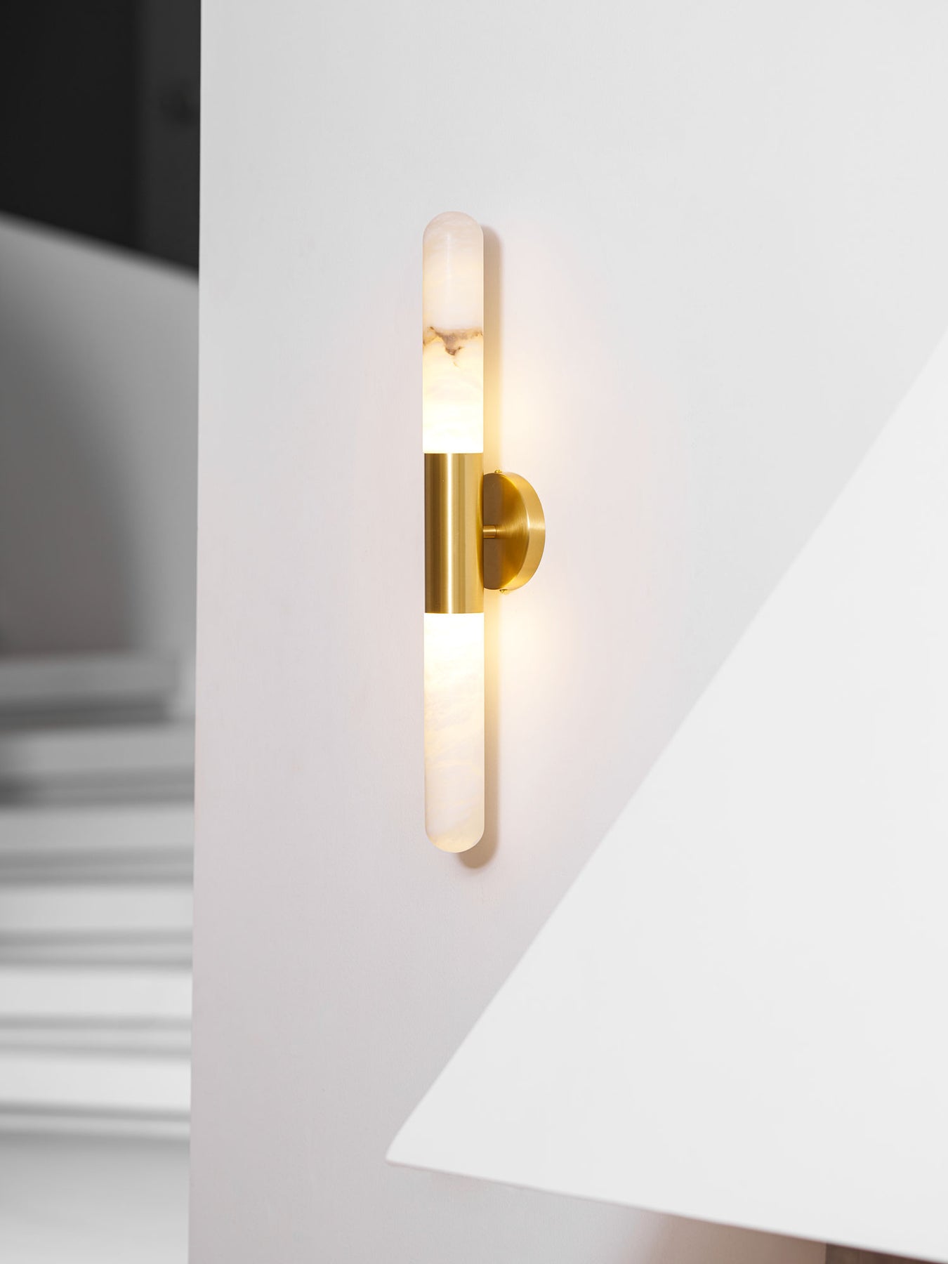 Sculpted from natural alabaster and finished with brushed metal accents, the Cavoya Wall Light by Vakkerlight is a timeless fusion of elegance and function. Its dual-ended glow creates a balanced ambiance, perfect for hallways, bedrooms, or sophisticated living spaces. The rounded edges and diffused light exude warmth, while the clean lines echo modern minimalism.