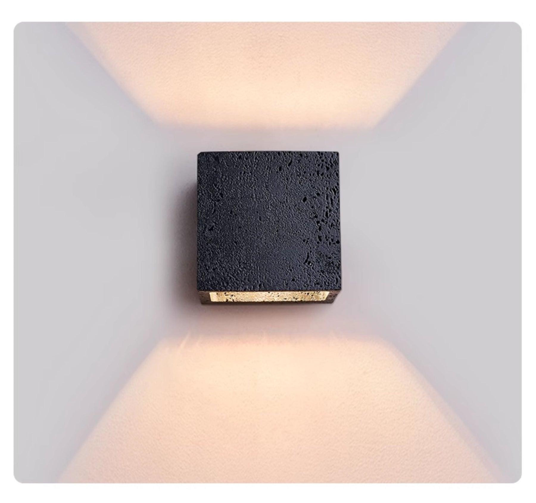 The Vulcanis Cube Wall Lamp distills lighting down to pure geometry and texture. Crafted from volcanic stone, its porous black surface gives the cube a raw sculptural presence, while the warm downward glow reveals a subtly golden inner finish. Minimal, architectural, and quietly bold, it adds a refined accent to hallways, bedrooms, and contemporary living environments.
