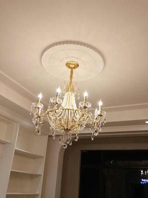 الأسقف القياسية (٩-١٠ أقدام): تُعدّ الثريات والأضواء المُعلقة مثالية للغرف ذات ارتفاعات الأسقف القياسية، خاصةً في غرف الطعام والمداخل. تأكد من أن الجزء السفلي من التركيب يبعد مسافة ٧ أقدام على الأقل من الأرضية.
