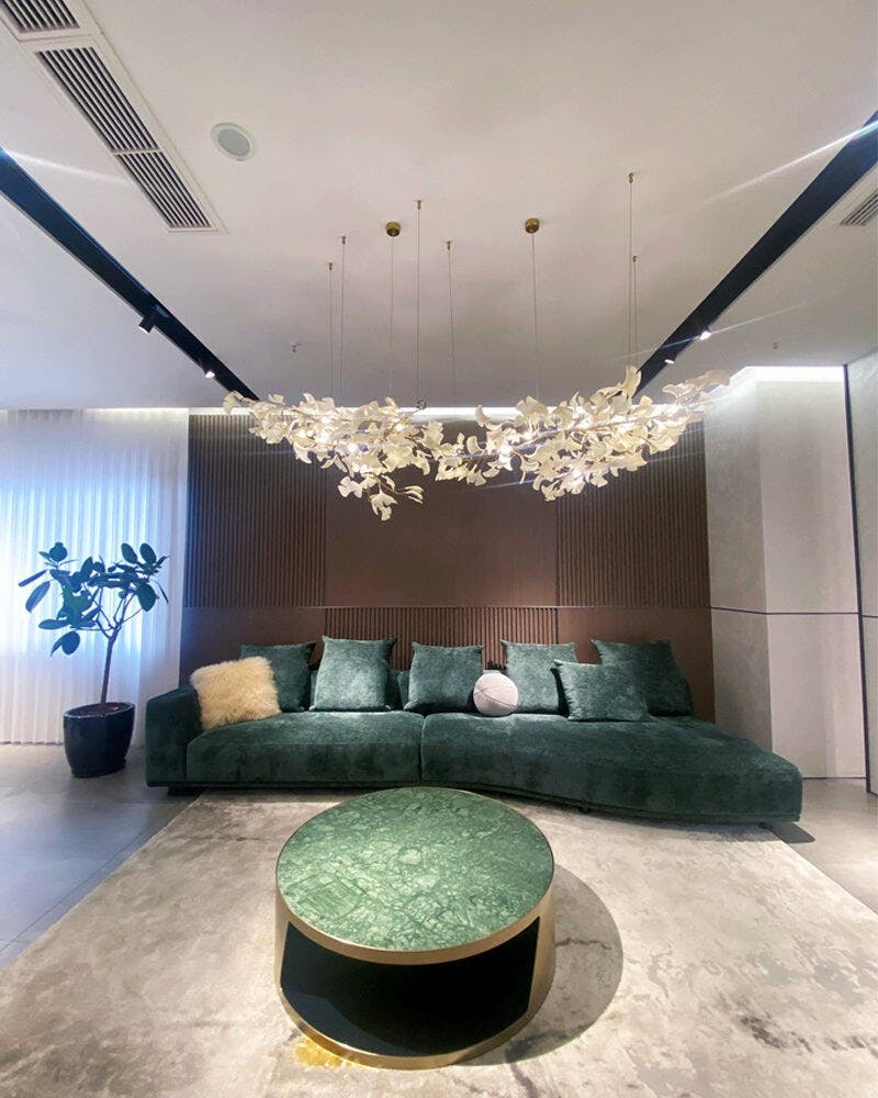 Expertly crafted with precision, the Ginkgo Leaf Chandelier celebrates the artistry of fine design. Each leaf is intricately shaped to highlight its delicate texture, reflecting exceptional attention to detail. Built for both beauty and durability, this chandelier is a true statement piece—where craftsmanship meets timeless elegance.