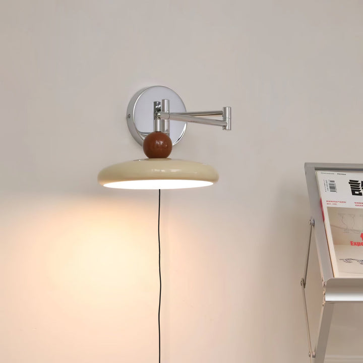 Introducing the Lola Plug-in Wall Lamp - the perfect addition to any home looking for a touch of elegance and style. With its uniquely designed round disk and chic finish, it provides a warm and beautiful glow, illuminating your space with ease.
