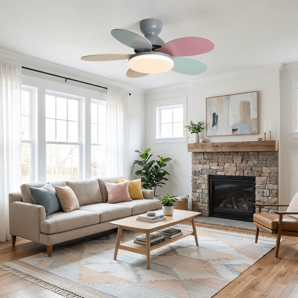 “ This fan light features 3-color dimmable lighting and reversible airflow, making it perfect for year-round use—cool in summer and warm in winter.“