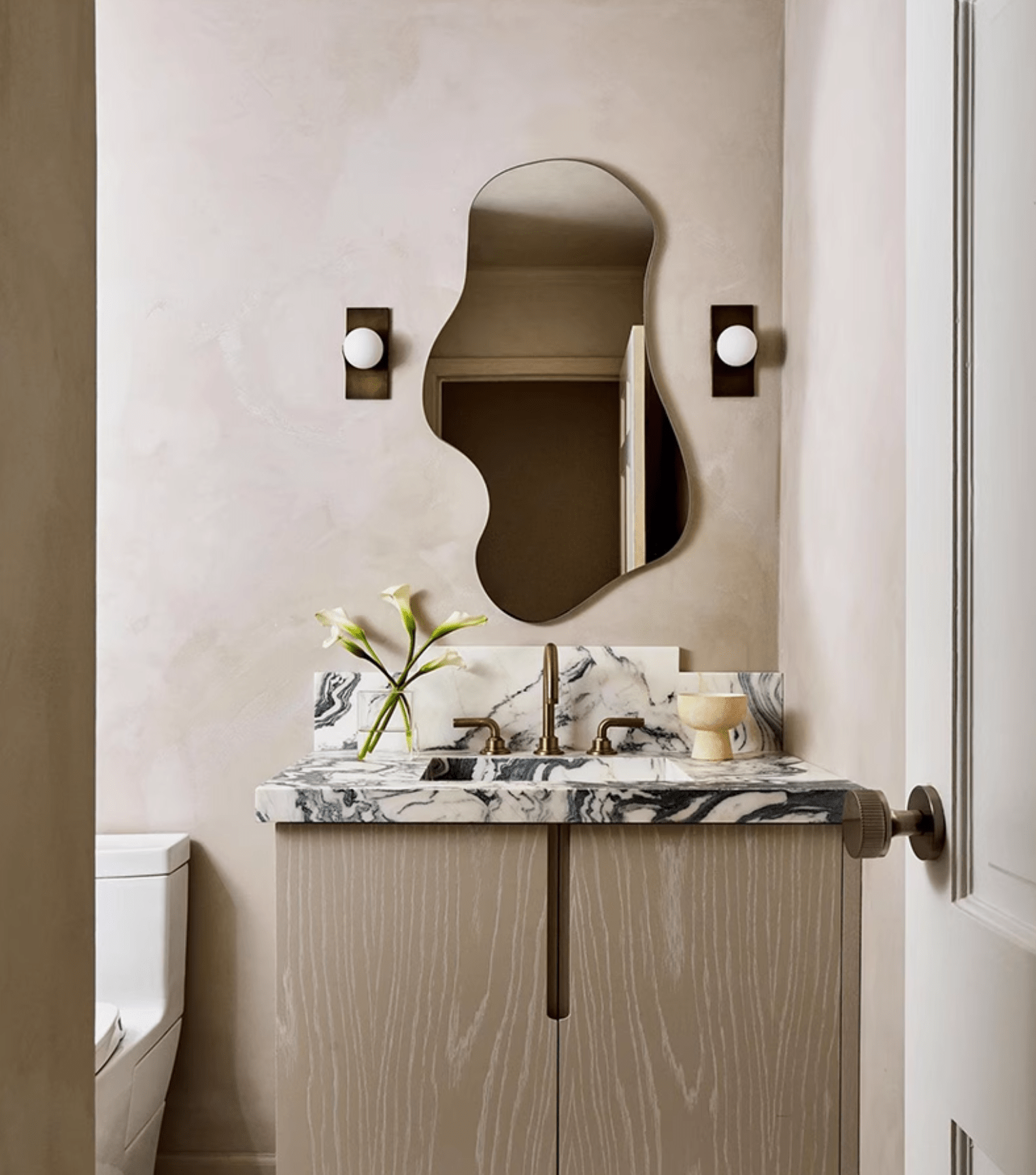 • إضاءة التسريحة: لإضاءة المهام، ضع الشمعدانات على جانبي مرآة التسريحة لتقليل الظلال. يجب تركيبها على ارتفاع 65-70 بوصة من الأرضية، وبمسافات مناسبة لتوزيع الإضاءة بالتساوي.