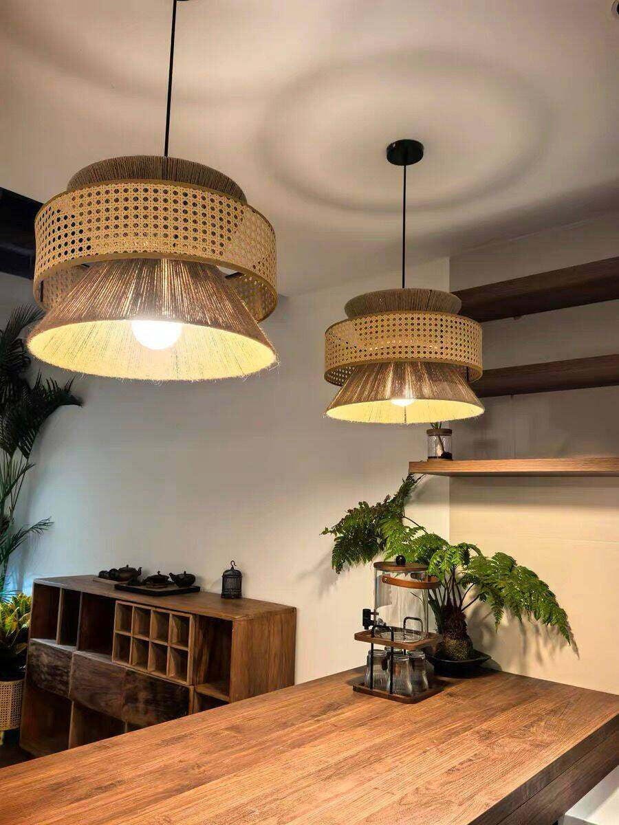 الروطان الخيزران قلادة مصباح
