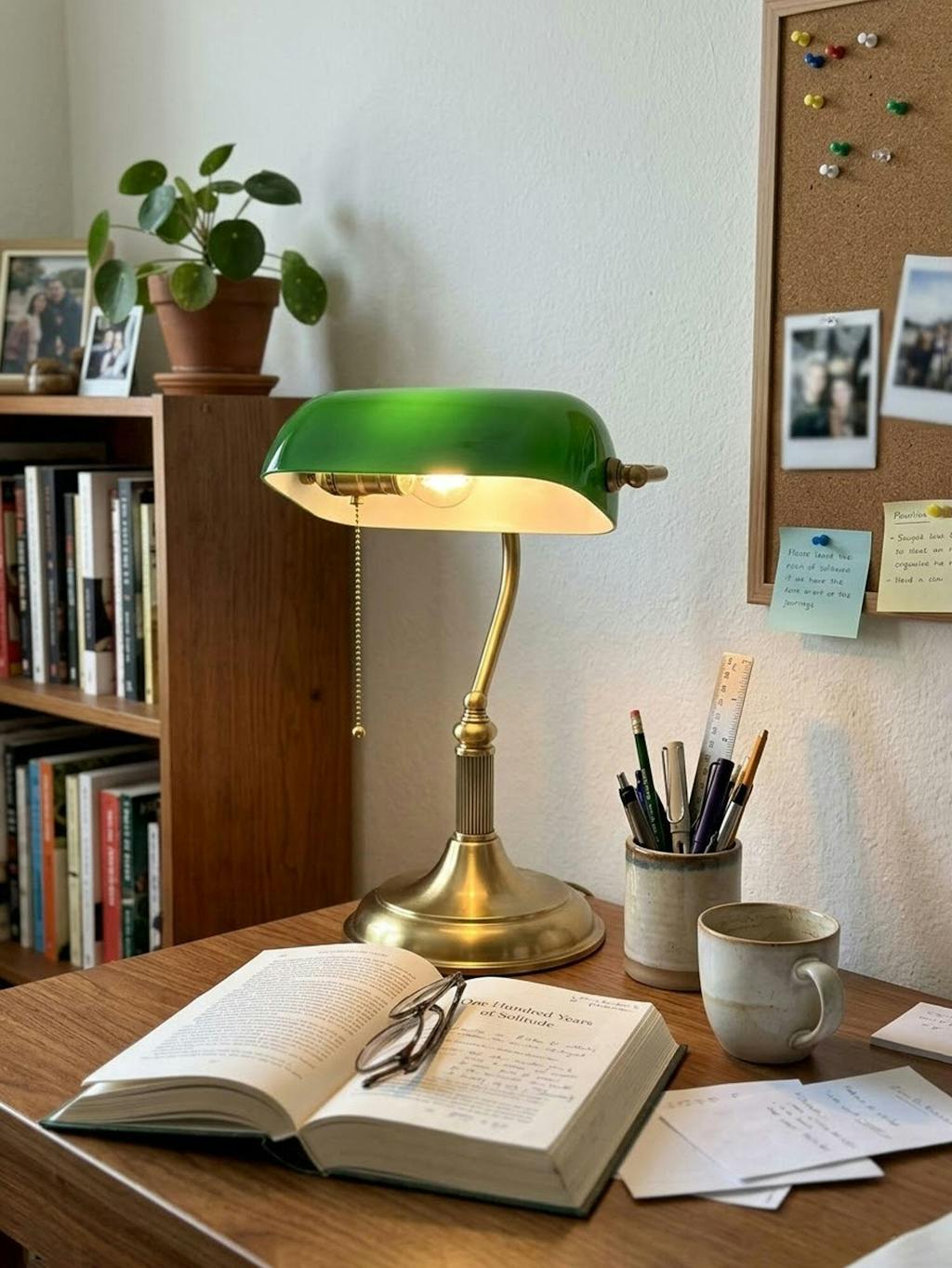 This lamp looks absolutely perfect sitting on our desk. Its just the right size and has a wonderful antique aesthetic. Our whole family loves this green lamp; it really brightens up our home office.