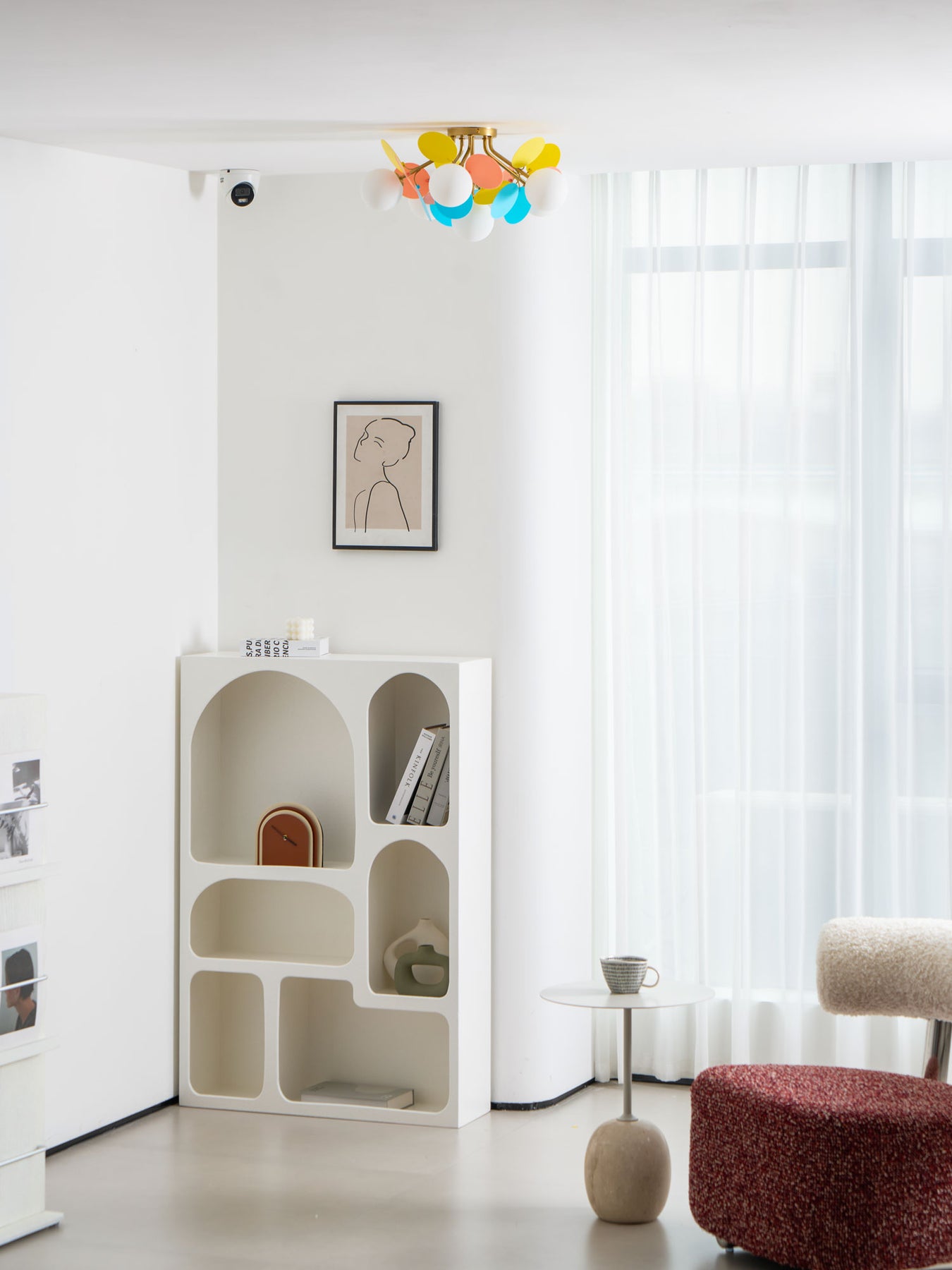 Introduce mid-century modern design to any room with our Round Macaron Ceiling Lamp. Featuring fun contemporary colors, this metal wall sconce adds personality and pastel perfection to your space. From children's rooms to offices, it's a glamorous addition that brightens up any area.