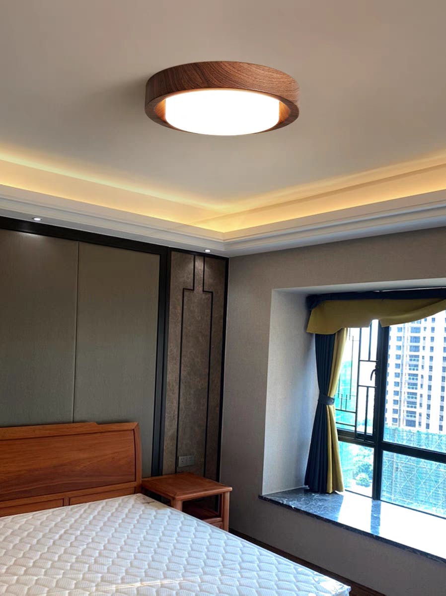 The Lunor Wood Ring Ceiling Light brings modern clarity and natural warmth together in a beautifully balanced design. Its clean, circular silhouette features a rounded Wood Grain Hydrographic Transfer-finished frame that encases a smooth white diffuser, providing soft, even illumination across the room. The interplay of warm walnut grain and minimalist geometry makes it a perfect fit for Scandinavian, Japandi, or mid-century interiors.