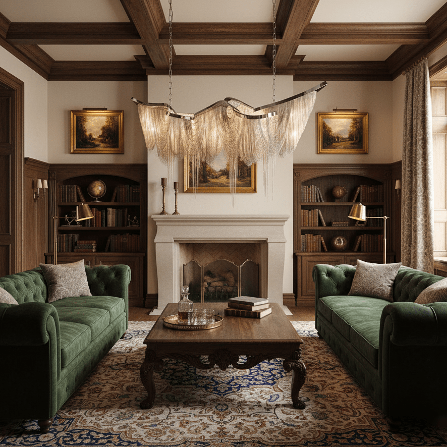 الأسقف العالية (١٠ أقدام أو أكثر): يمكن للغرف ذات الأسقف العالية أن تستوعب تركيبات إضاءة أكبر وأكثر دراماتيكية. استغل ارتفاع الغرفة لصالحك عن طريق اختيار تركيبات أطول تجذب العين لأعلى وتخلق اهتمامًا بصريًا.