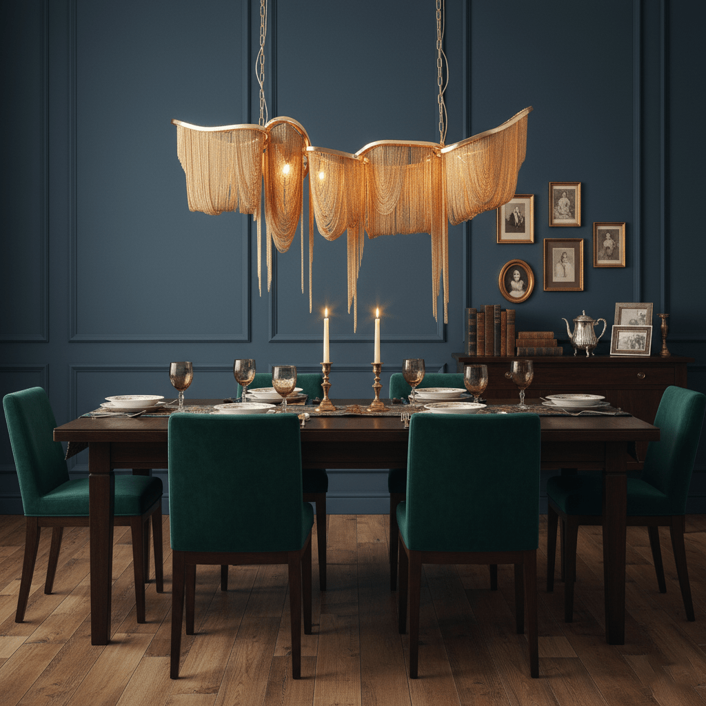 الأسقف القياسية (٩-١٠ أقدام): تُعدّ الثريات والأضواء المُعلقة مثالية للغرف ذات ارتفاعات الأسقف القياسية، خاصةً في غرف الطعام والمداخل. تأكد من أن الجزء السفلي من التركيب يبعد مسافة ٧ أقدام على الأقل من الأرضية.