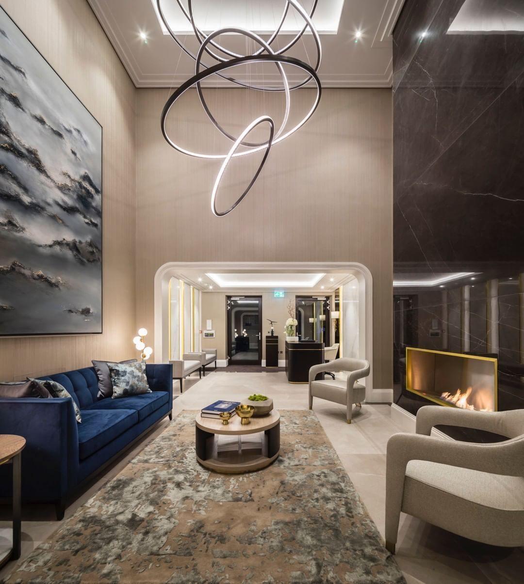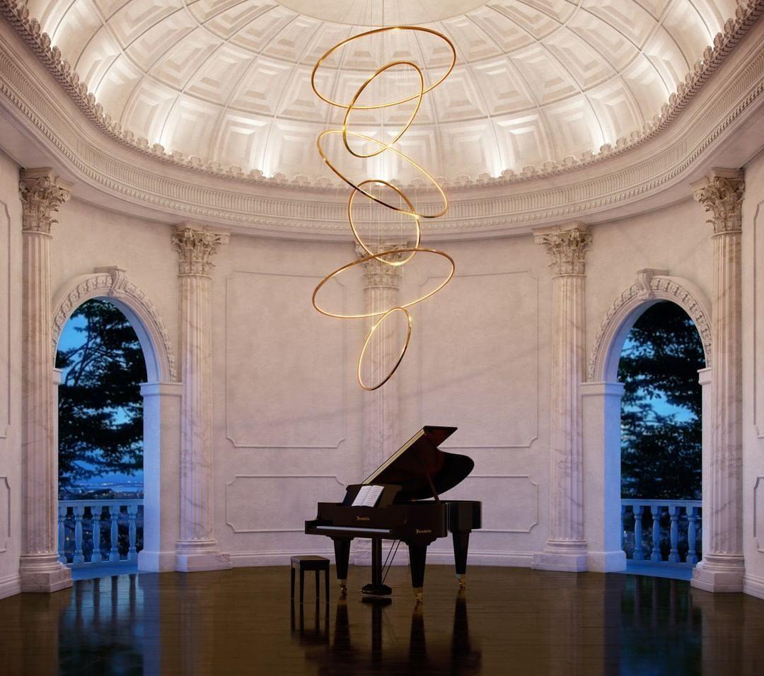 الأسقف العالية (١٠ أقدام أو أكثر): يمكن للغرف ذات الأسقف العالية أن تستوعب تركيبات إضاءة أكبر وأكثر دراماتيكية. استغل ارتفاع الغرفة لصالحك عن طريق اختيار تركيبات أطول تجذب العين لأعلى وتخلق اهتمامًا بصريًا.
