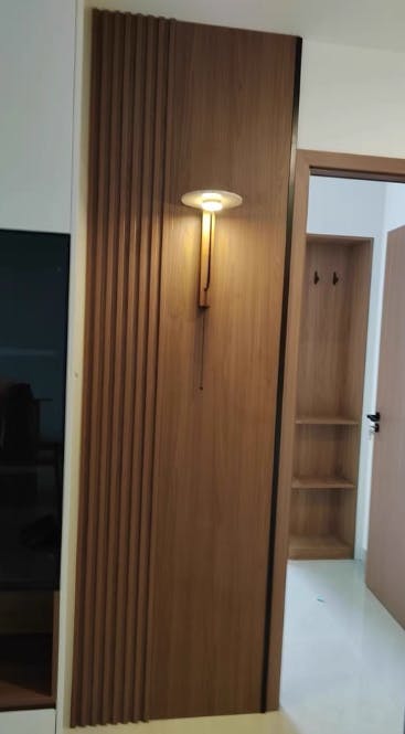 The Aura Arm Wall Lamp by Vakkerlight features a unique blend of geometric design and natural materials. With a slim arm supporting a warm, radiant light disc, this lamp adds an elegant touch to bedrooms, hallways, or accent walls.