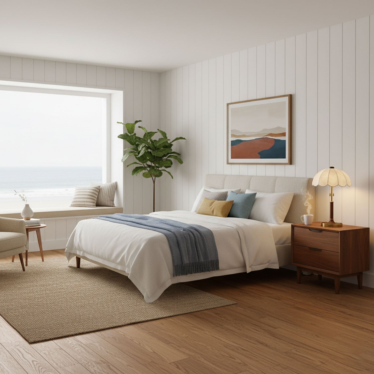 Ceiling Fixtures: Bedrooms benefit from soft, ambient lighting. Use the room dimension formula to ensure the ceiling fixture is properly scaled. Semi-flush or flush mounts work well for general lighting, while sconces or bedside lamps provide focused task lighting.