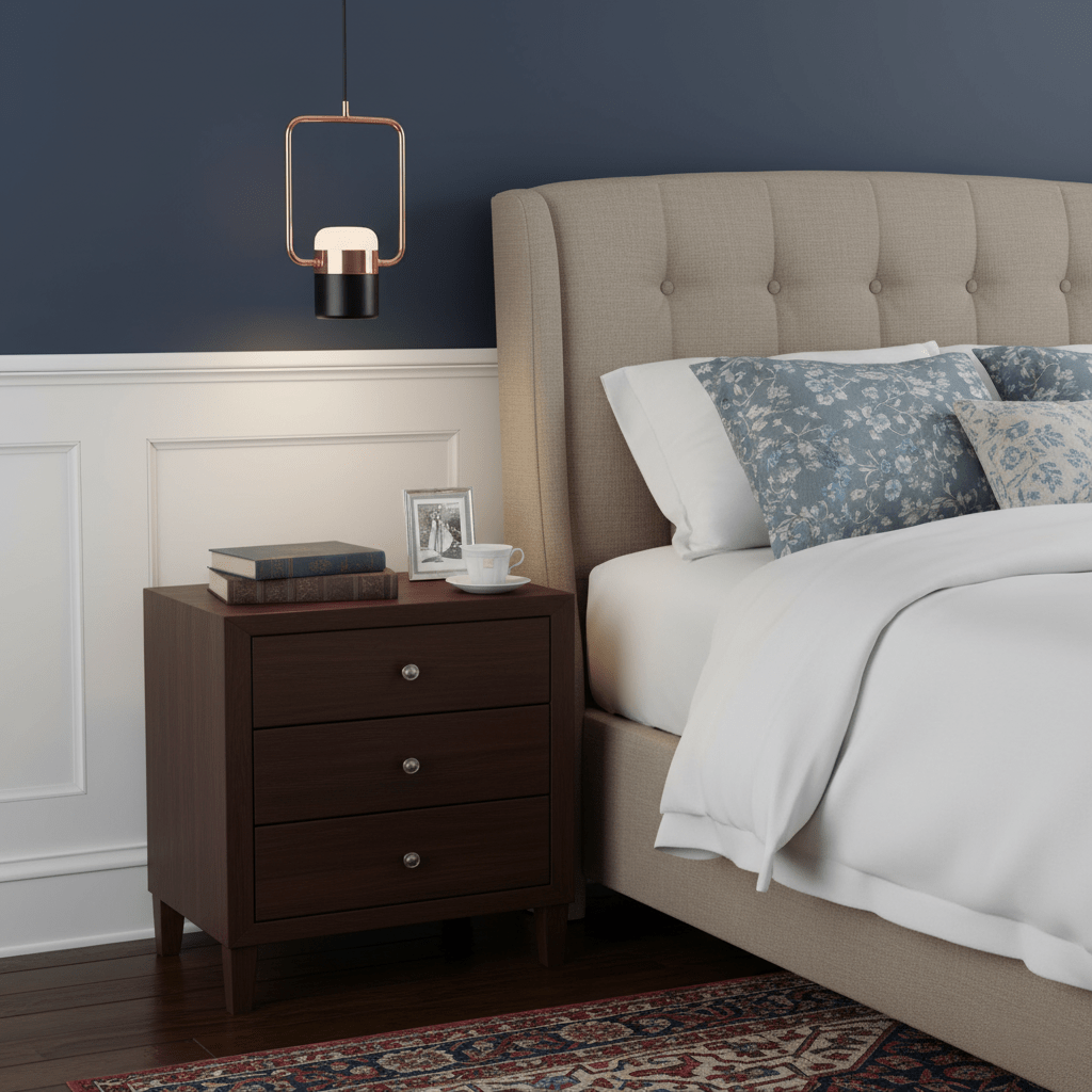 Ceiling Fixtures: Bedrooms benefit from soft, ambient lighting. Use the room dimension formula to ensure the ceiling fixture is properly scaled. Semi-flush or flush mounts work well for general lighting, while sconces or bedside lamps provide focused task lighting.