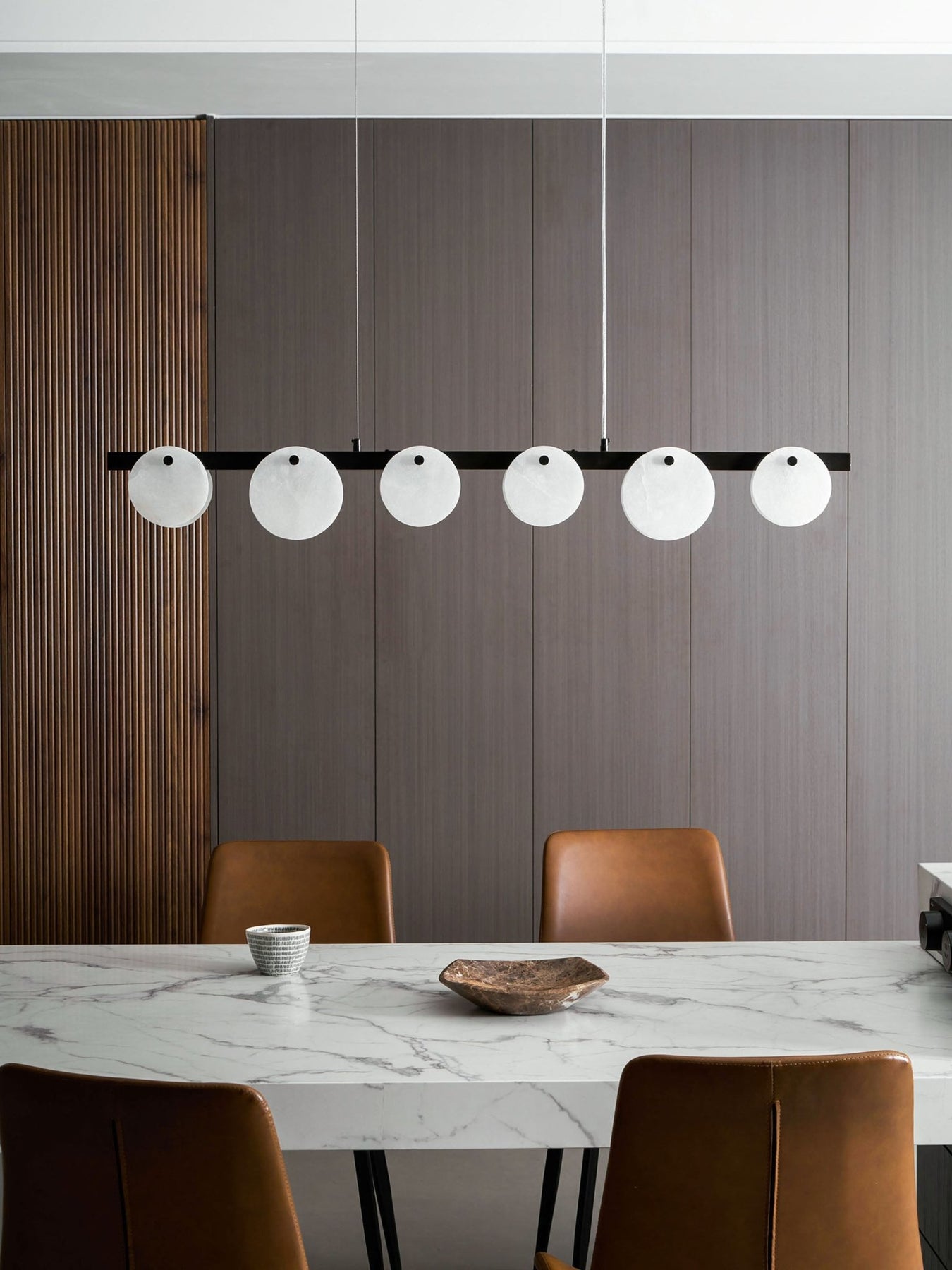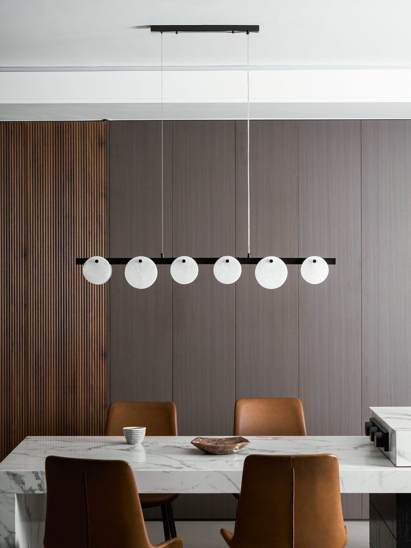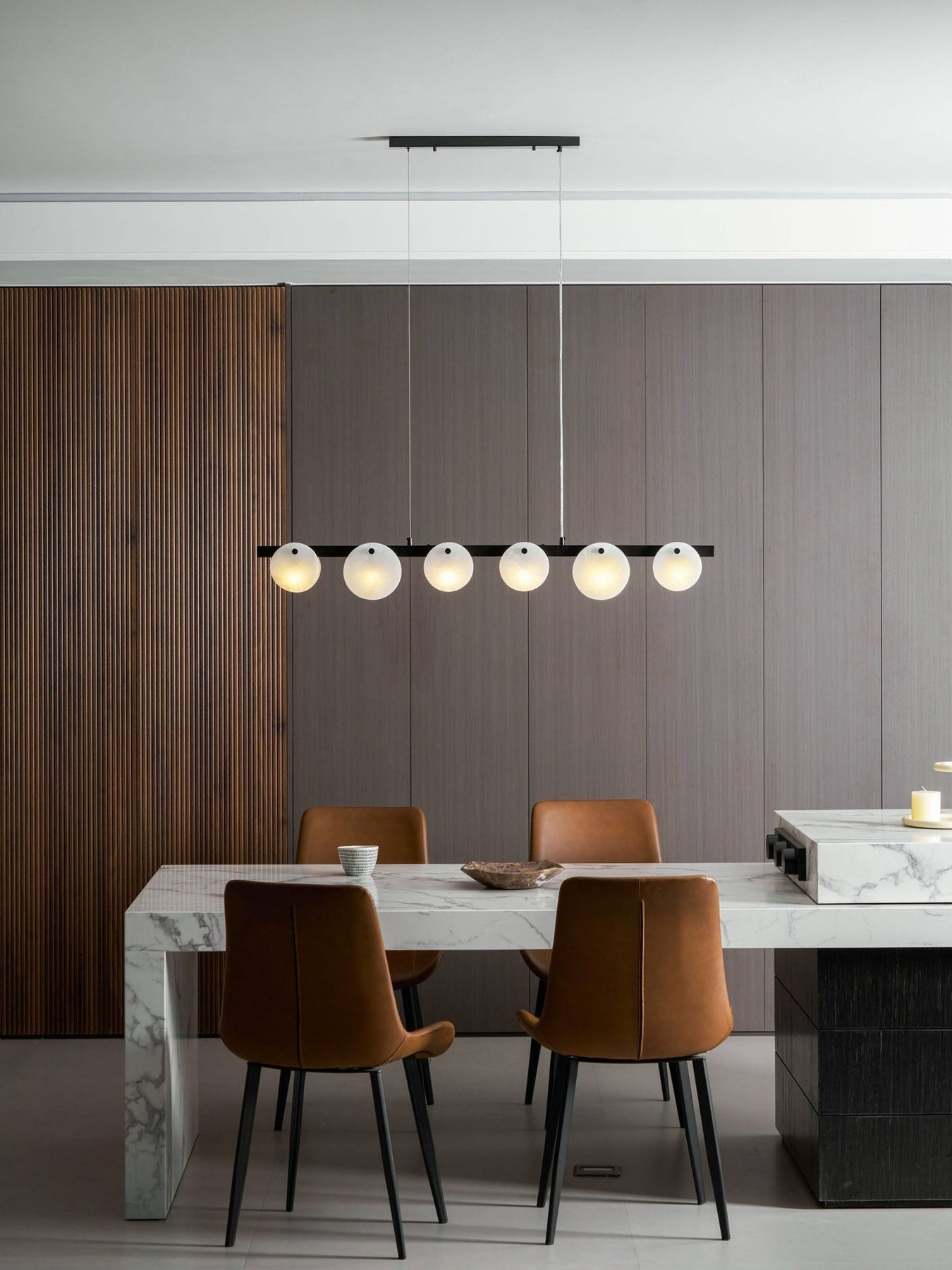 Alabaster’s translucent stone diffuses light into a soft,