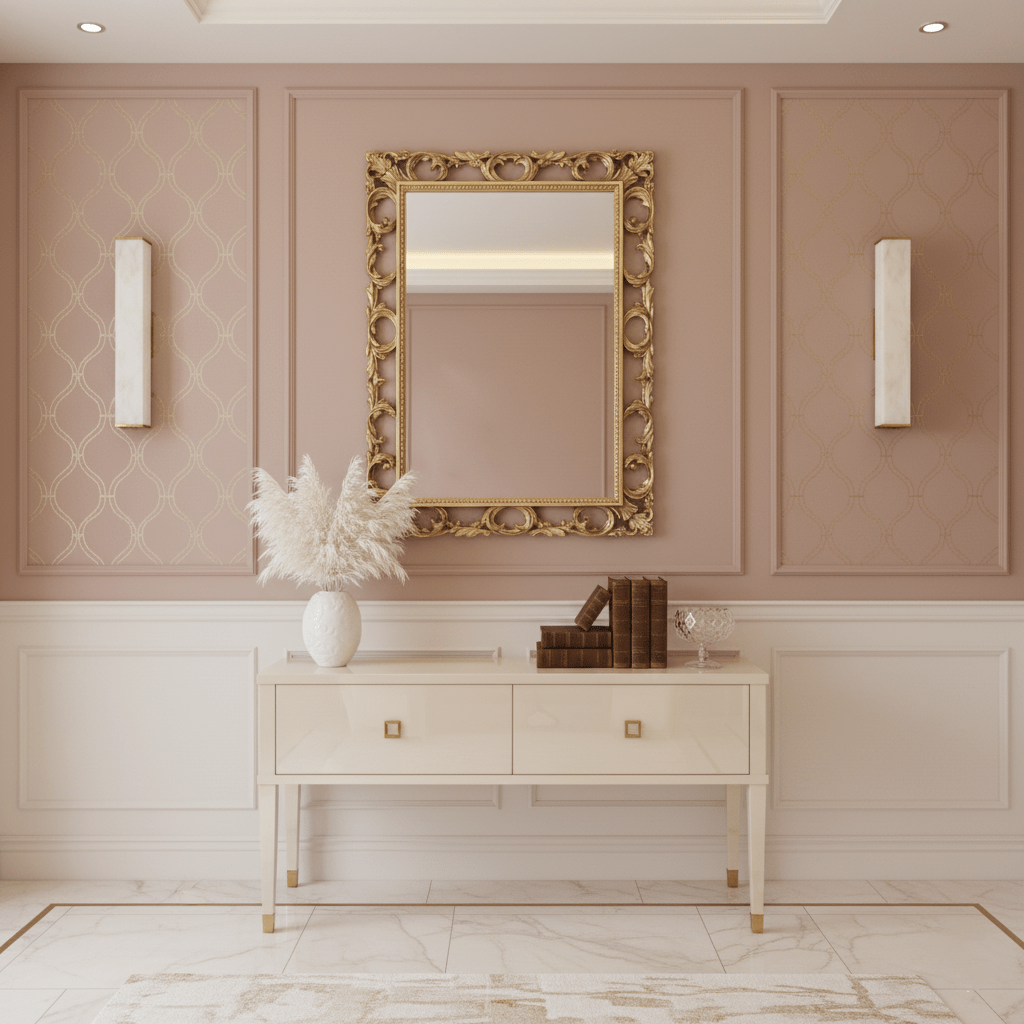 Chandeliers: The entryway is the perfect spot for a statement chandelier. Use the length + width formula to determine the diameter, and ensure the fixture hangs at least 7 feet from the floor to allow clearance.