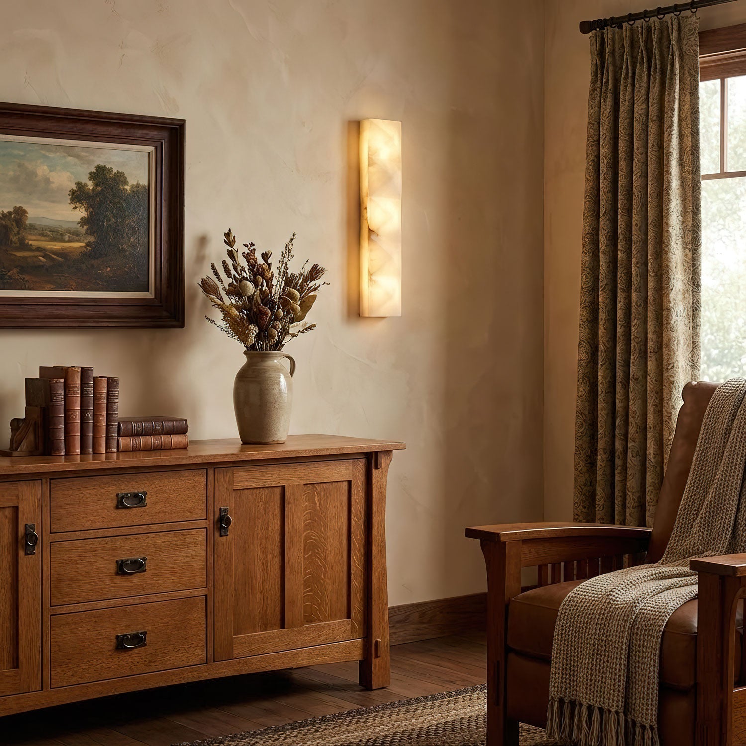 The Vakkerlight Prism Alabaster Wall Sconce showcases a refined interplay of light and texture through its faceted design and alabaster-inspired finish. Its elongated, geometric form brings a sculptural elegance to any space, while the soft, translucent surface diffuses light beautifully, creating a warm, ambient glow. Perfect for flanking mirrors, illuminating hallways, or adding subtle sophistication to living areas, this sconce is a modern statement piece that complements both minimalist and luxe interiors.