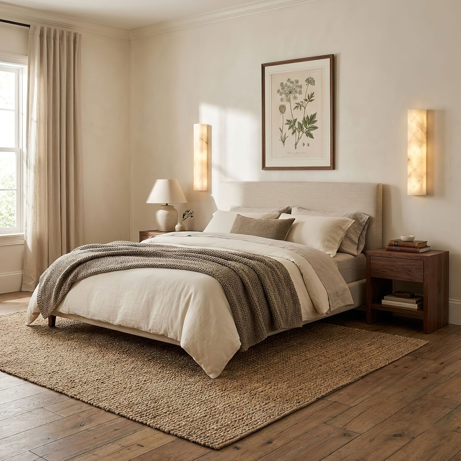 Task Lighting: Bedside lamps or wall sconces should be proportionate to the size of the nightstands and the bed. The lamp height should be roughly at eye level when sitting in bed.