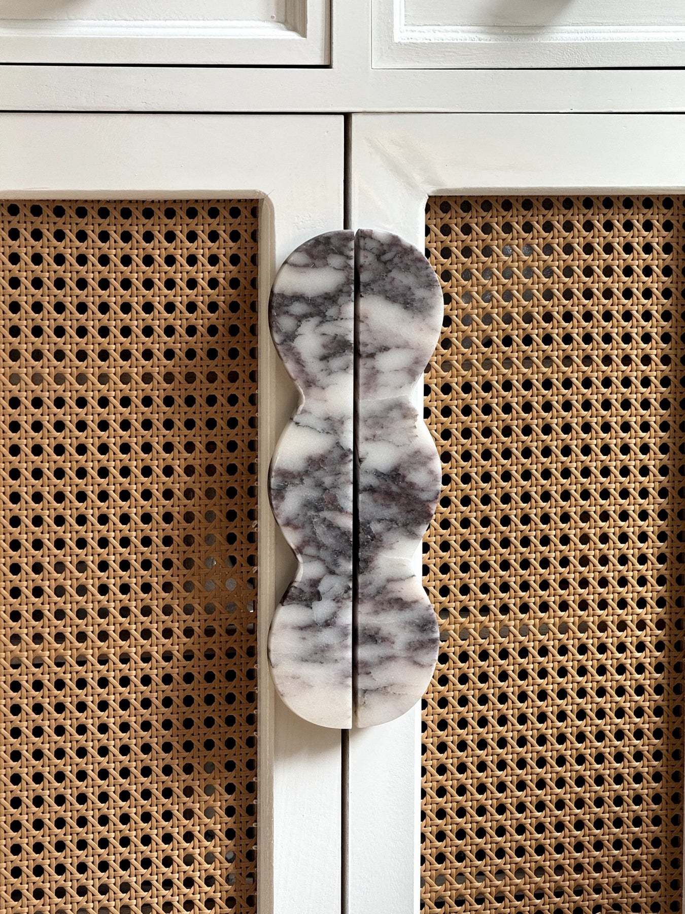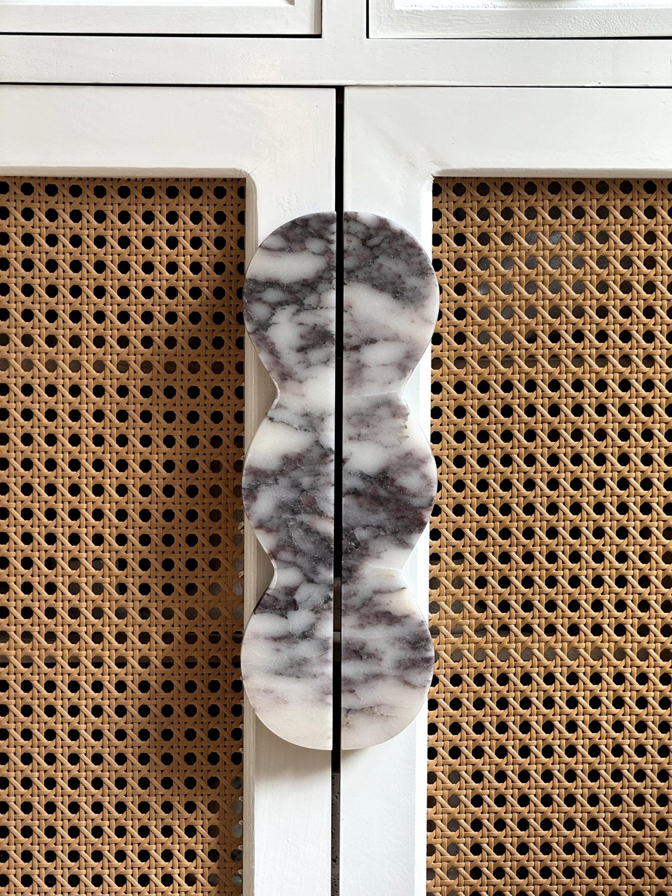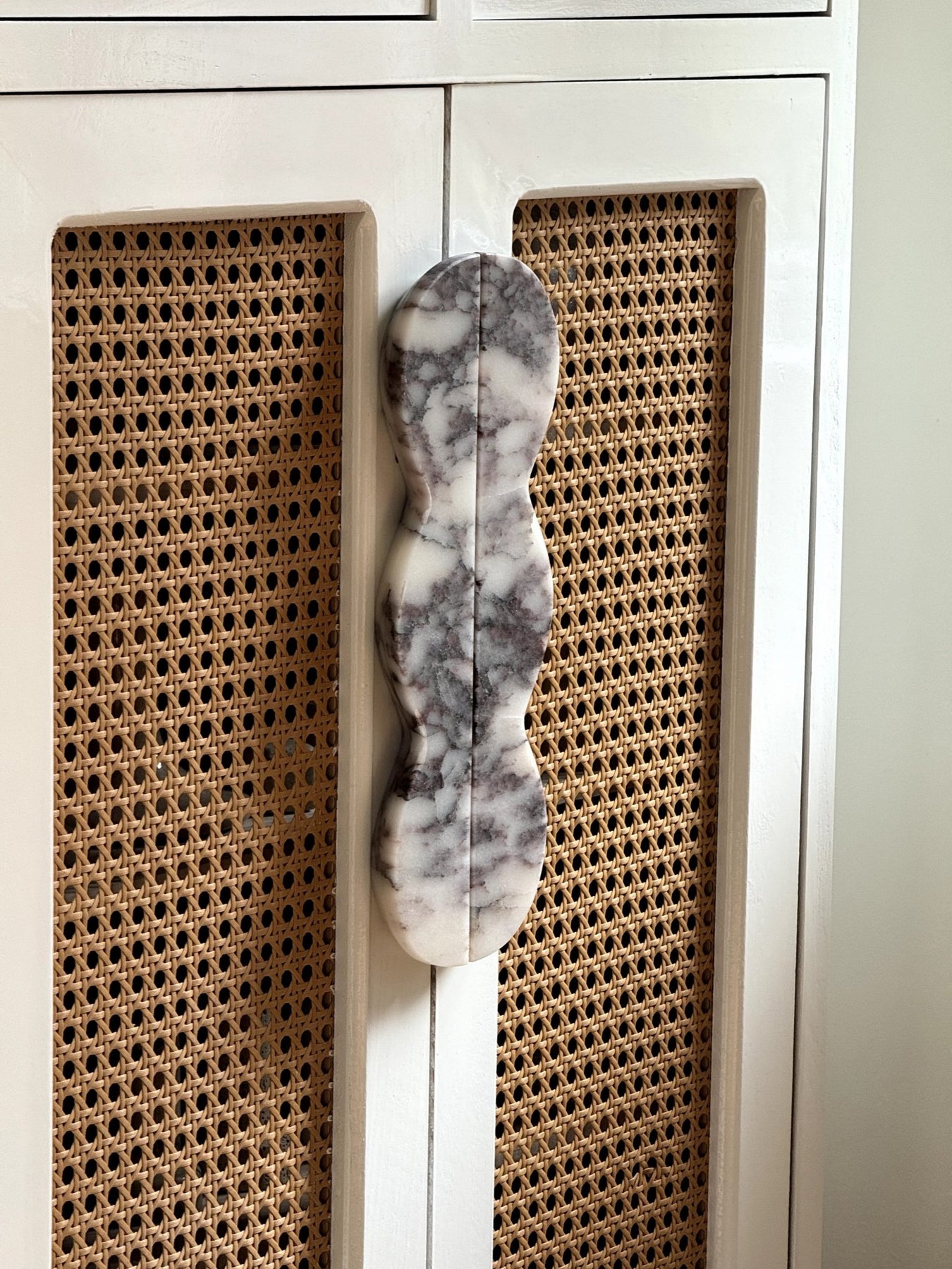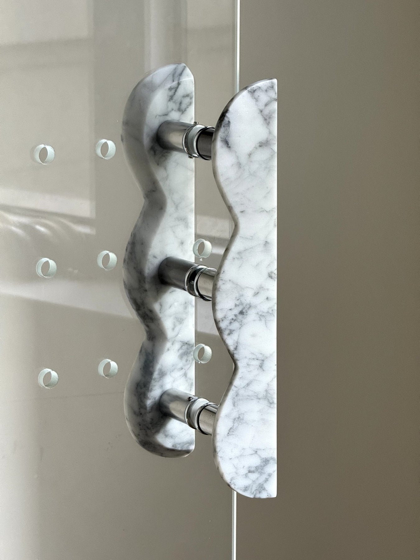The Marbelline Twin-Curve Marble Pull by Vakkerlight brings sculptural elegance to cabinetry and furniture. Crafted from natural marble, its symmetrical double-curve silhouette adds a soft, organic rhythm to doors and drawers. Each piece is uniquely veined, highlighting the stone’s inherent character while offering a tactile, luxurious feel. Minimal yet expressive, this marble pull elevates kitchens, wardrobes, and built-ins with a refined modern aesthetic.