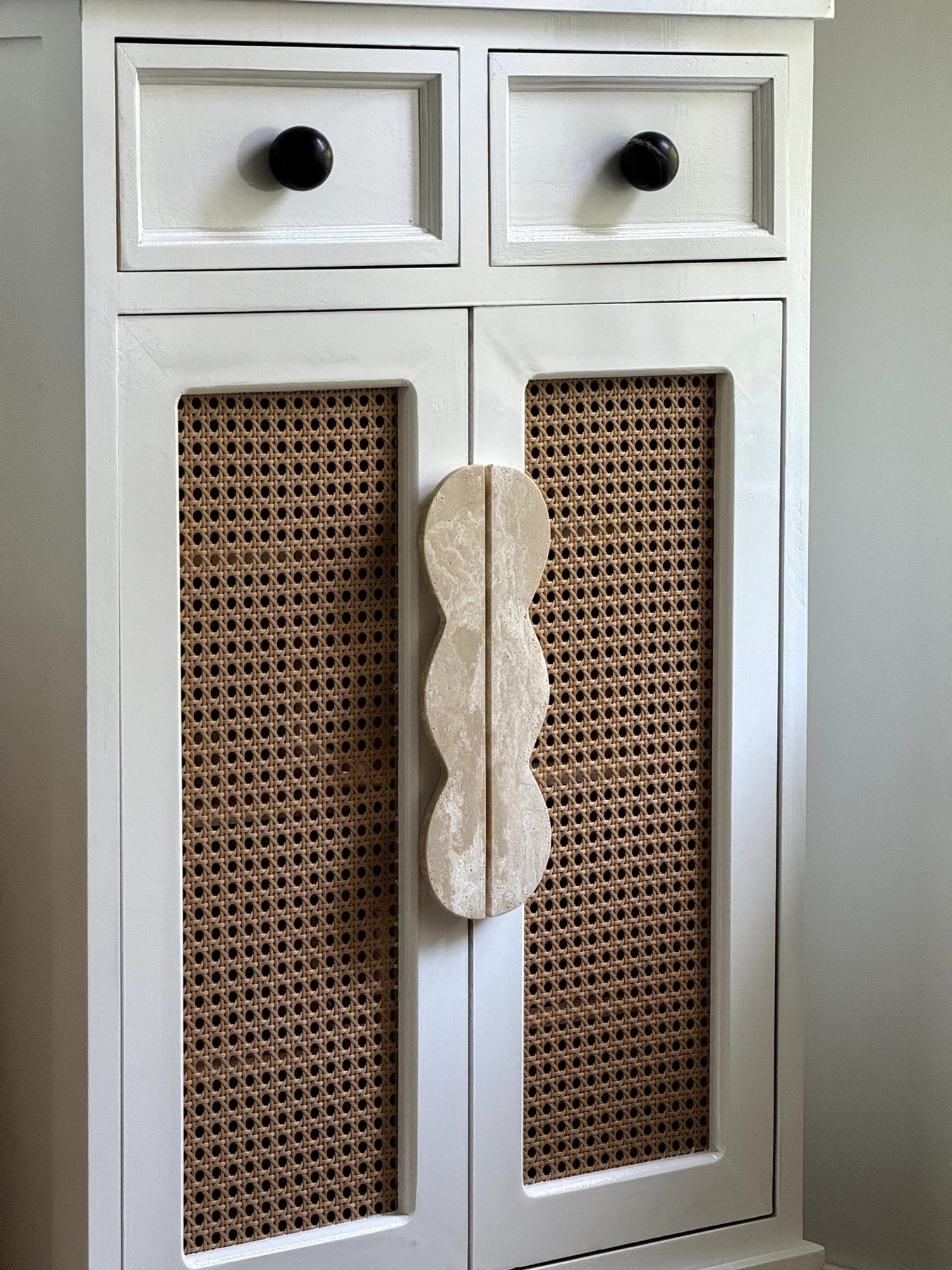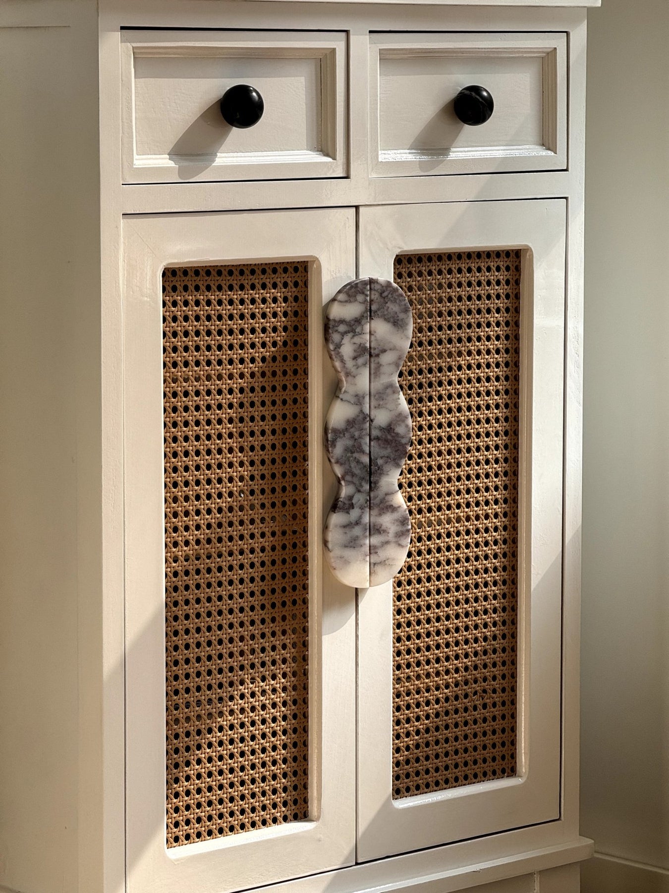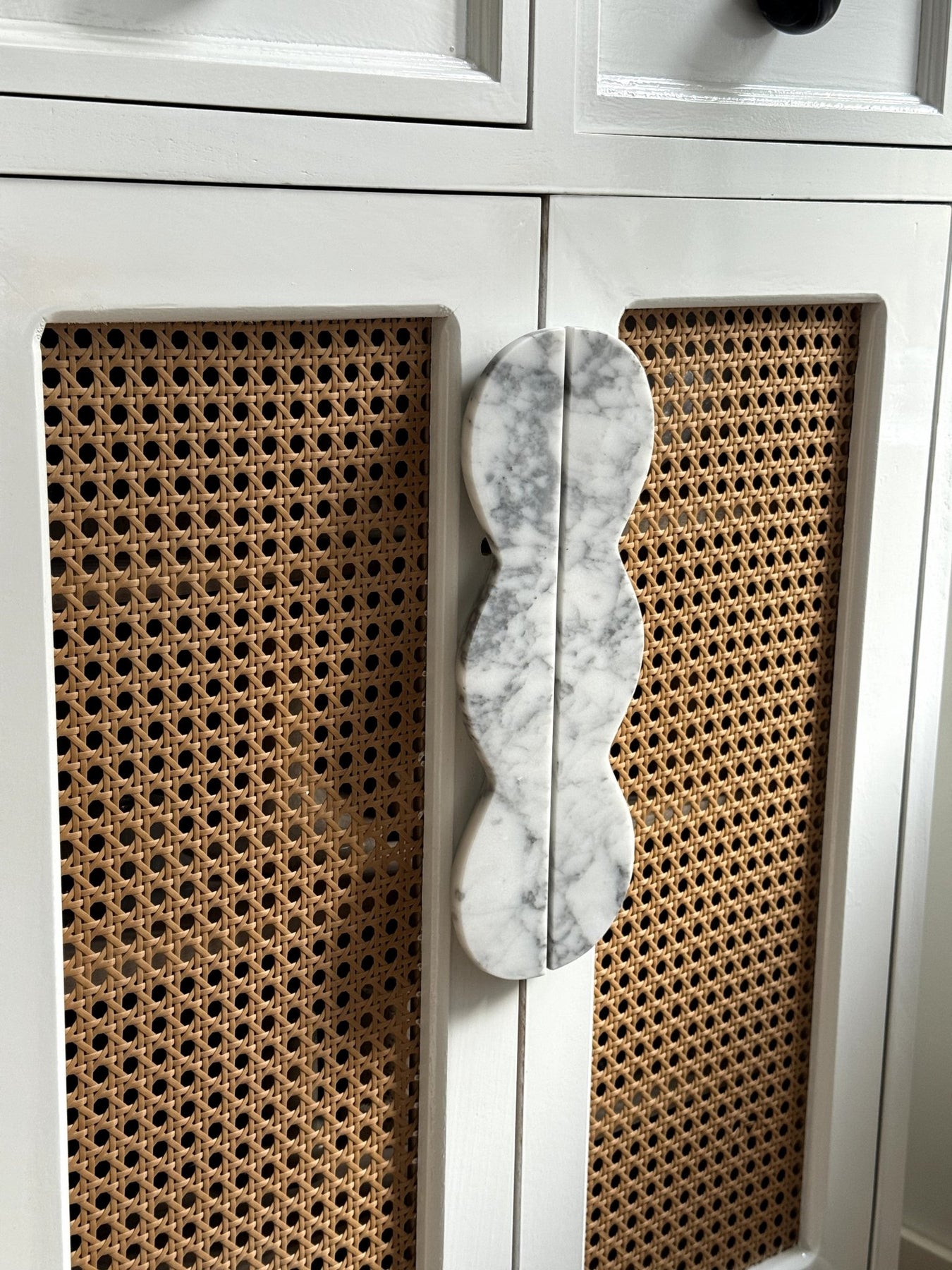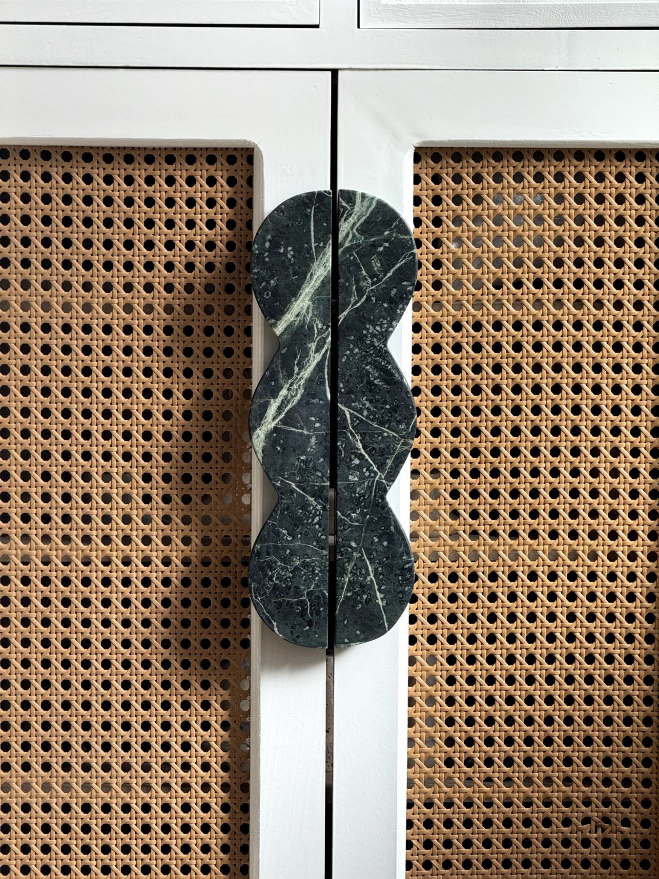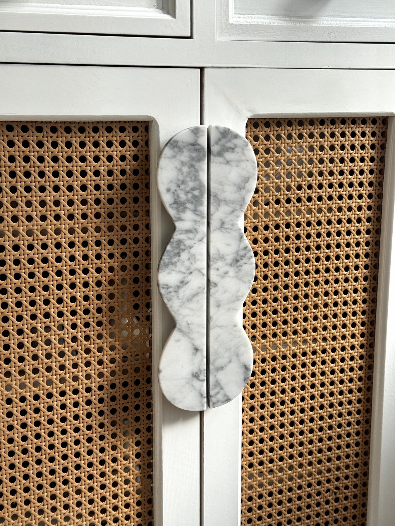 The Marbelline Twin-Curve Marble Pull by Vakkerlight brings sculptural elegance to cabinetry and furniture. Crafted from natural marble, its symmetrical double-curve silhouette adds a soft, organic rhythm to doors and drawers. Each piece is uniquely veined, highlighting the stone’s inherent character while offering a tactile, luxurious feel. Minimal yet expressive, this marble pull elevates kitchens, wardrobes, and built-ins with a refined modern aesthetic.