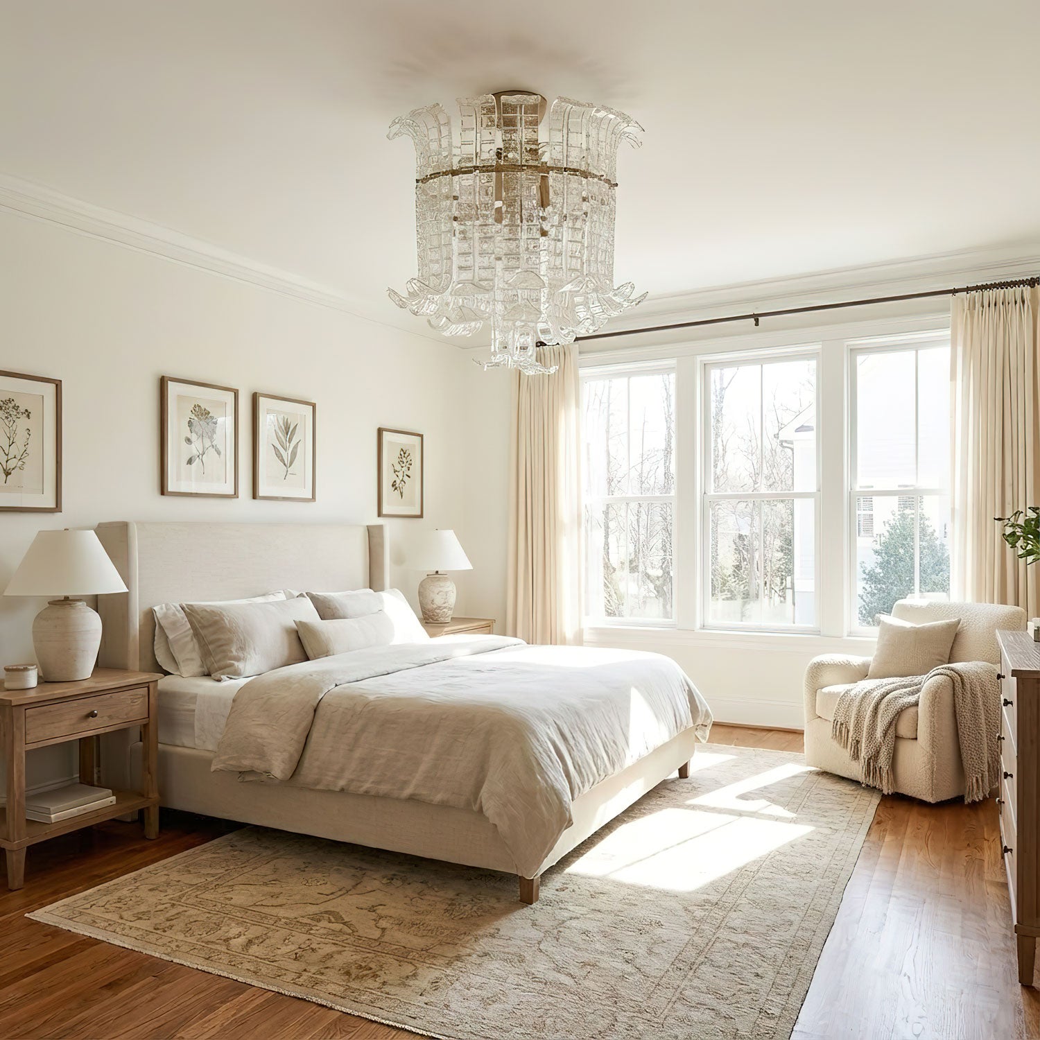 Ceiling Fixtures: Bedrooms benefit from soft, ambient lighting. Use the room dimension formula to ensure the ceiling fixture is properly scaled. Semi-flush or flush mounts work well for general lighting, while sconces or bedside lamps provide focused task lighting.