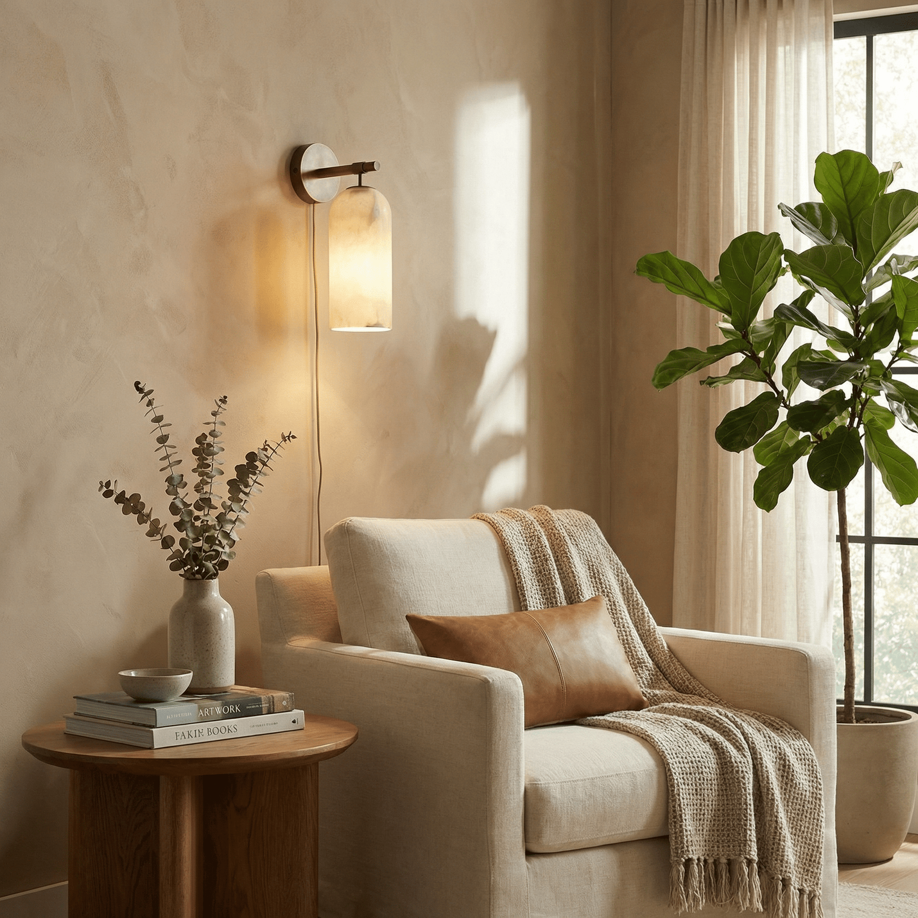 Pillar Alabaster Plug-in Wall Sconce
