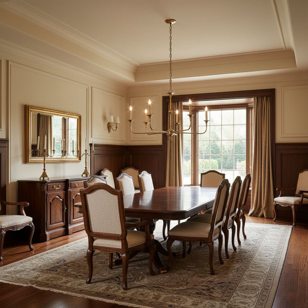 • Chandeliers: As the centerpiece of the dining room, the chandelier should be wide enough to complement the size of the dining table but not so wide that it overwhelms the space. A diameter of 1/2 to 2/3 the table width is a good guide.