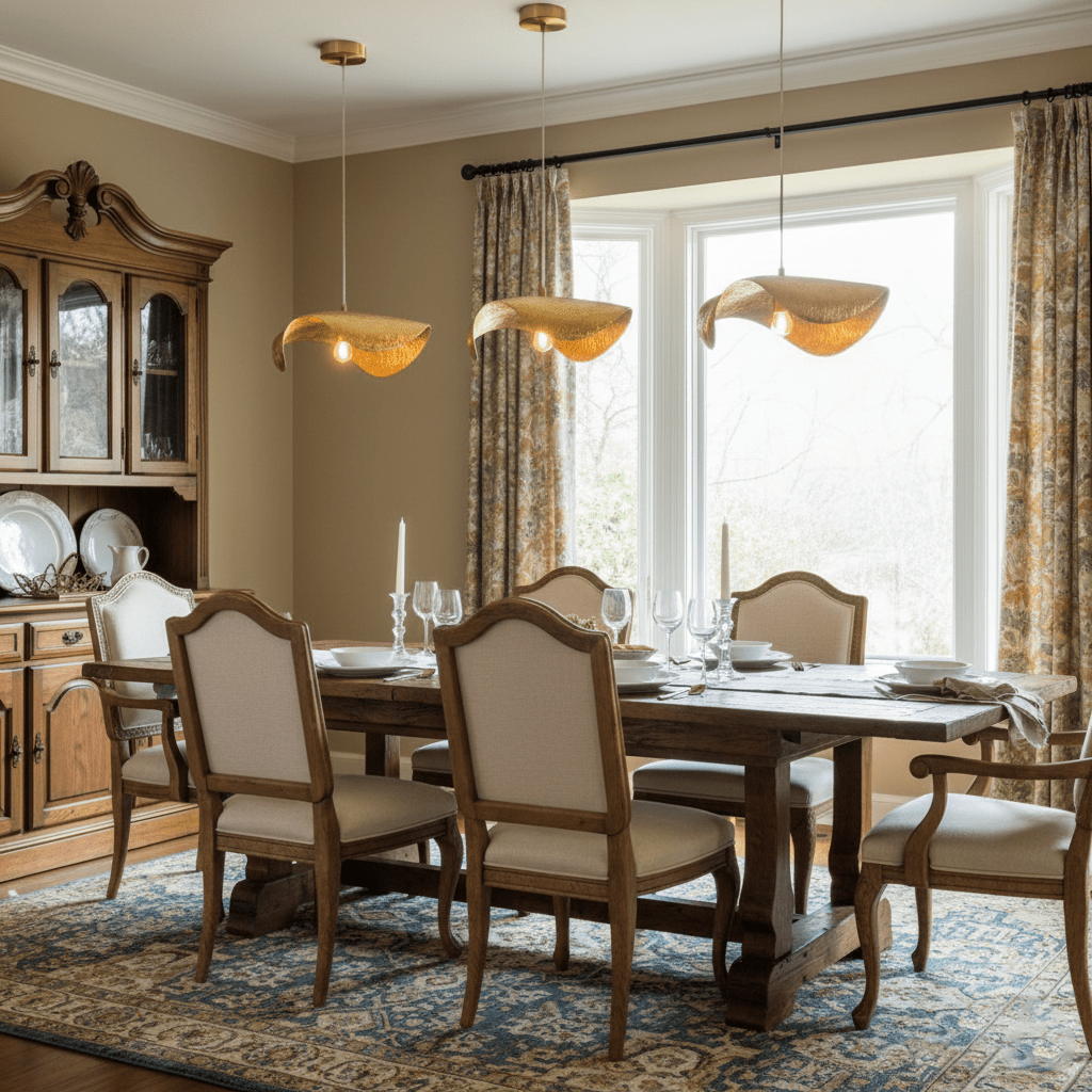 - Multiple Pendants: For long rectangular tables, two or three smaller pendants spaced evenly above the table create a balanced look.