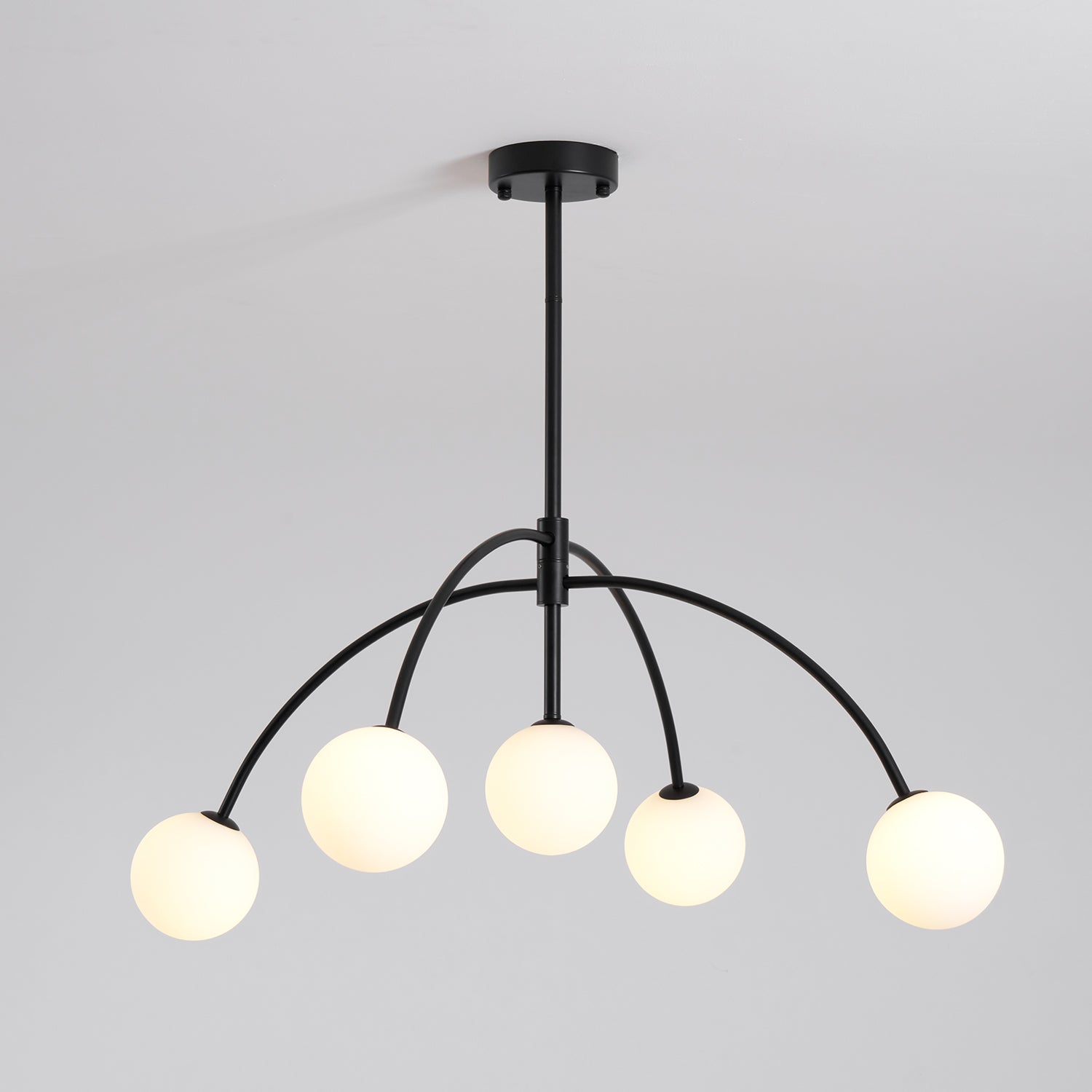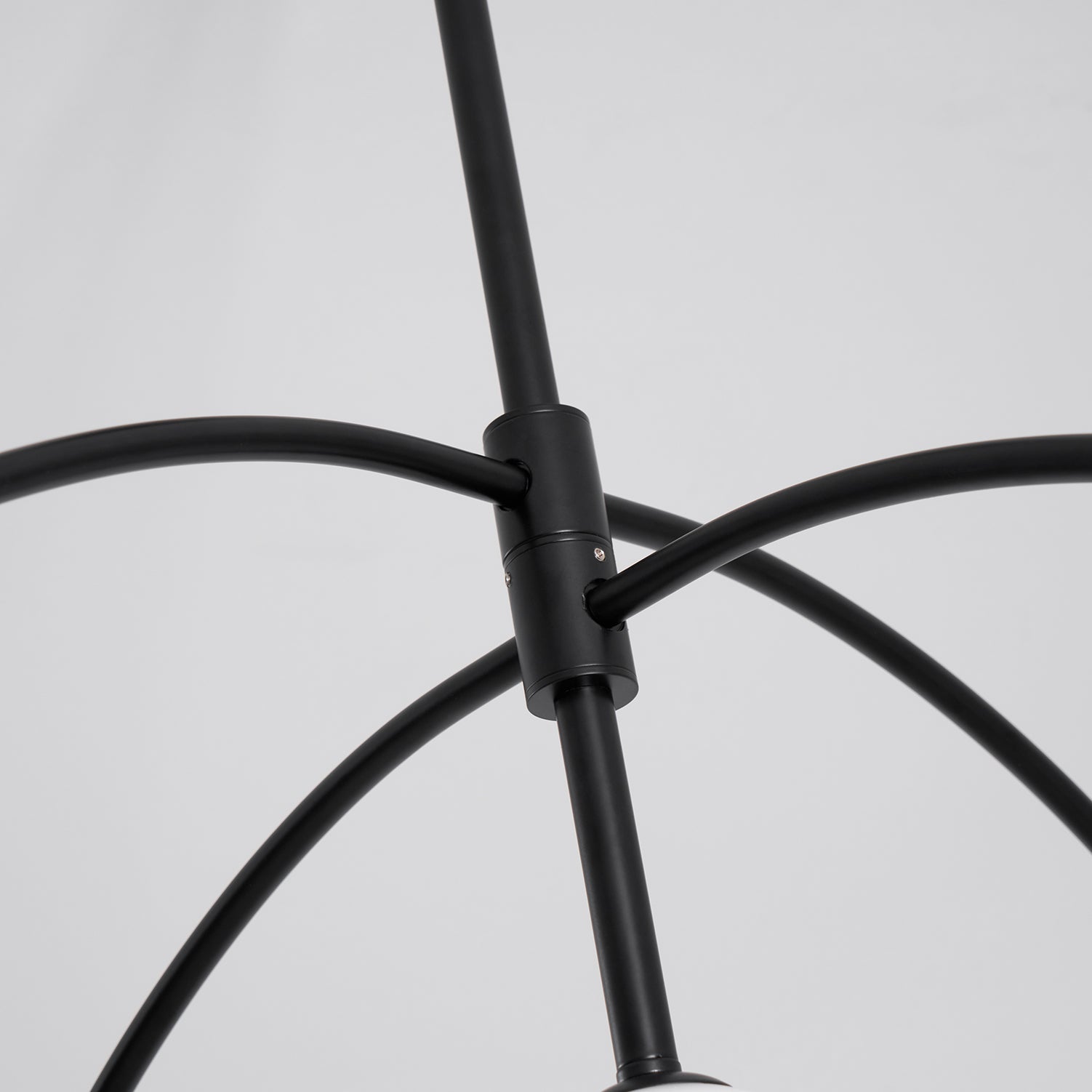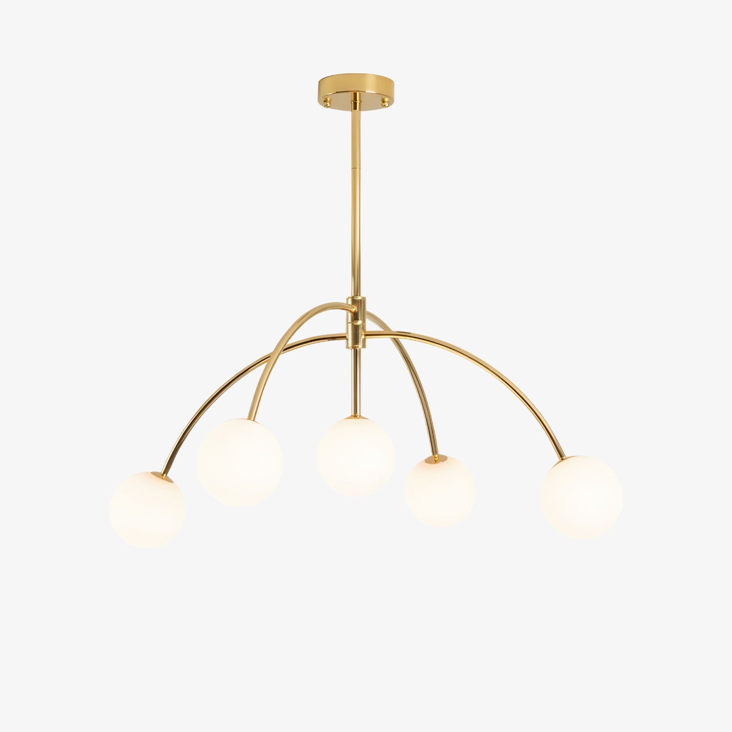 The Valentina Arc Chandelier is a modern lighting fixture that combines spherical and arched design elements. Its versatile design complements any interior and adds a stylish touch above a table or any focal point. Enhance your space with this on-trend piece.