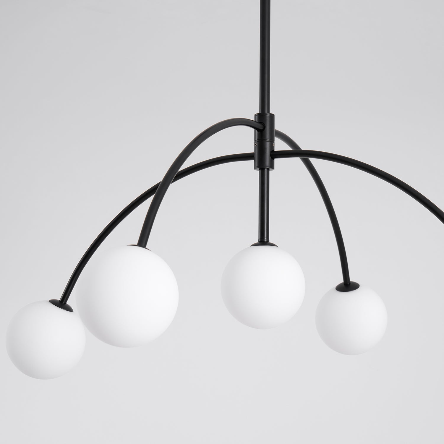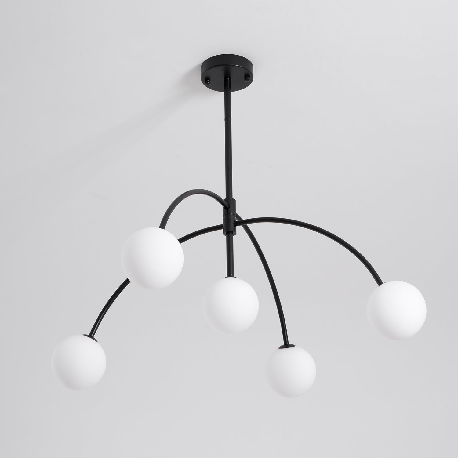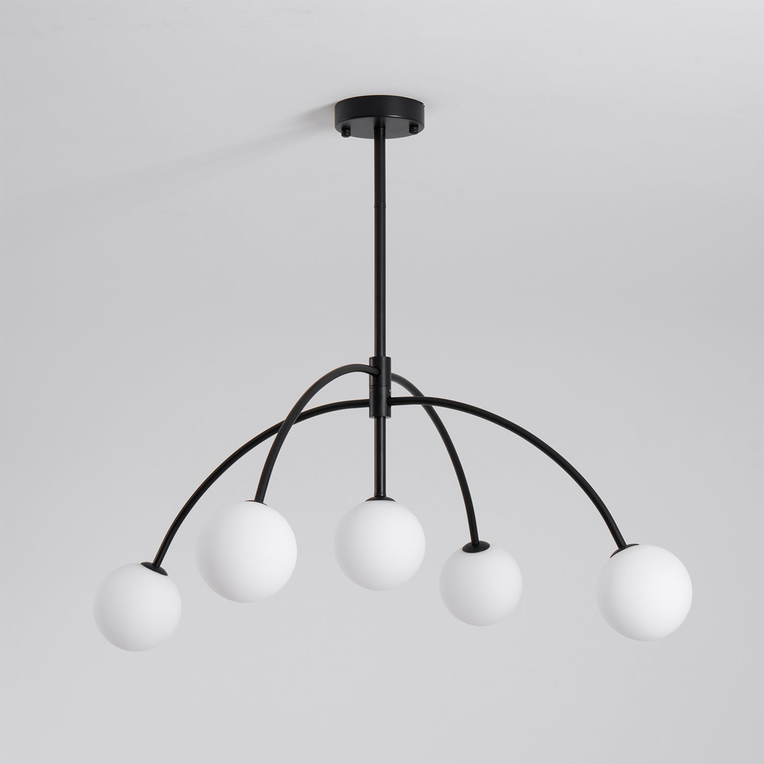 The Valentina Arc Chandelier is a modern lighting fixture that combines spherical and arched design elements. Its versatile design complements any interior and adds a stylish touch above a table or any focal point. Enhance your space with this on-trend piece.