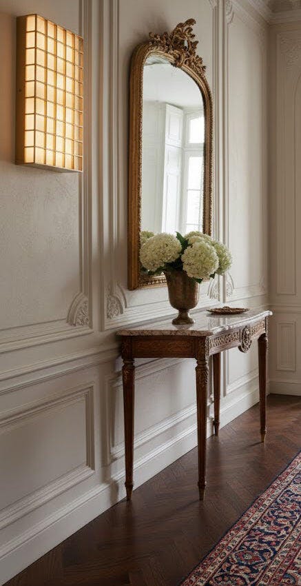 Chandeliers: The entryway is the perfect spot for a statement chandelier. Use the length + width formula to determine the diameter, and ensure the fixture hangs at least 7 feet from the floor to allow clearance.