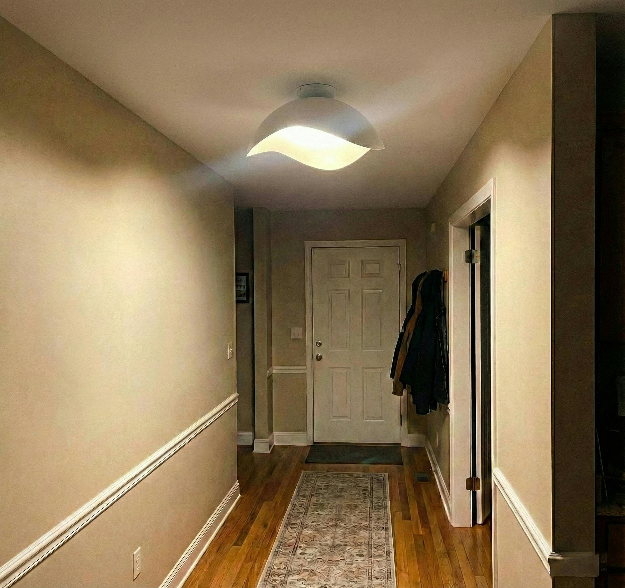 The Serene Wave Ceiling Light by Vakkerlight brings a sense of calm and elegance to any room with its fluid, wave-like form. The gracefully curved shade softly wraps around the light source, diffusing a warm, ambient glow that enhances the atmosphere of your space. Perfect for bedrooms, living rooms, or entryways, the Serene Wave Ceiling Light adds a contemporary touch with its sculptural design, making it a stylish focal point that balances modern aesthetics with a soothing presence.