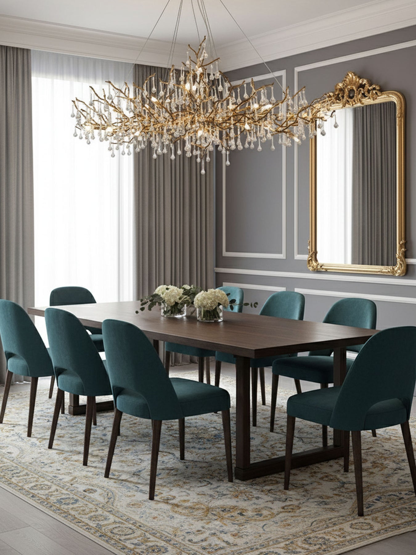 - Multiple Pendants: For long rectangular tables, two or three smaller pendants spaced evenly above the table create a balanced look.