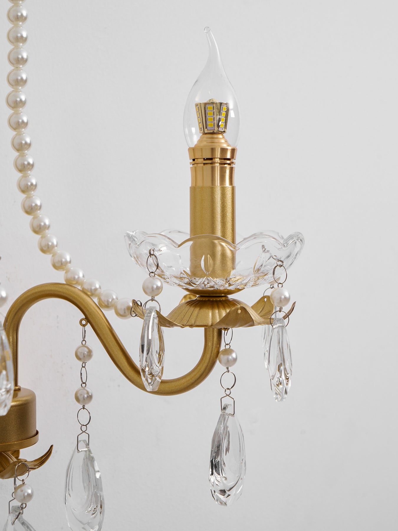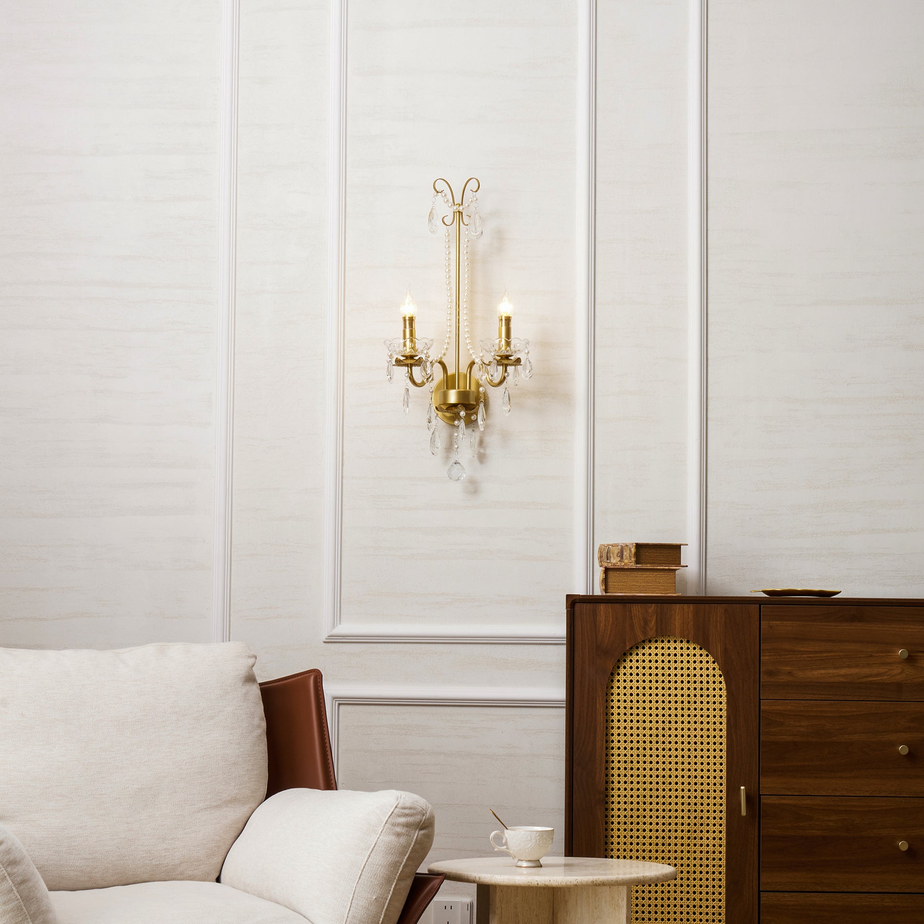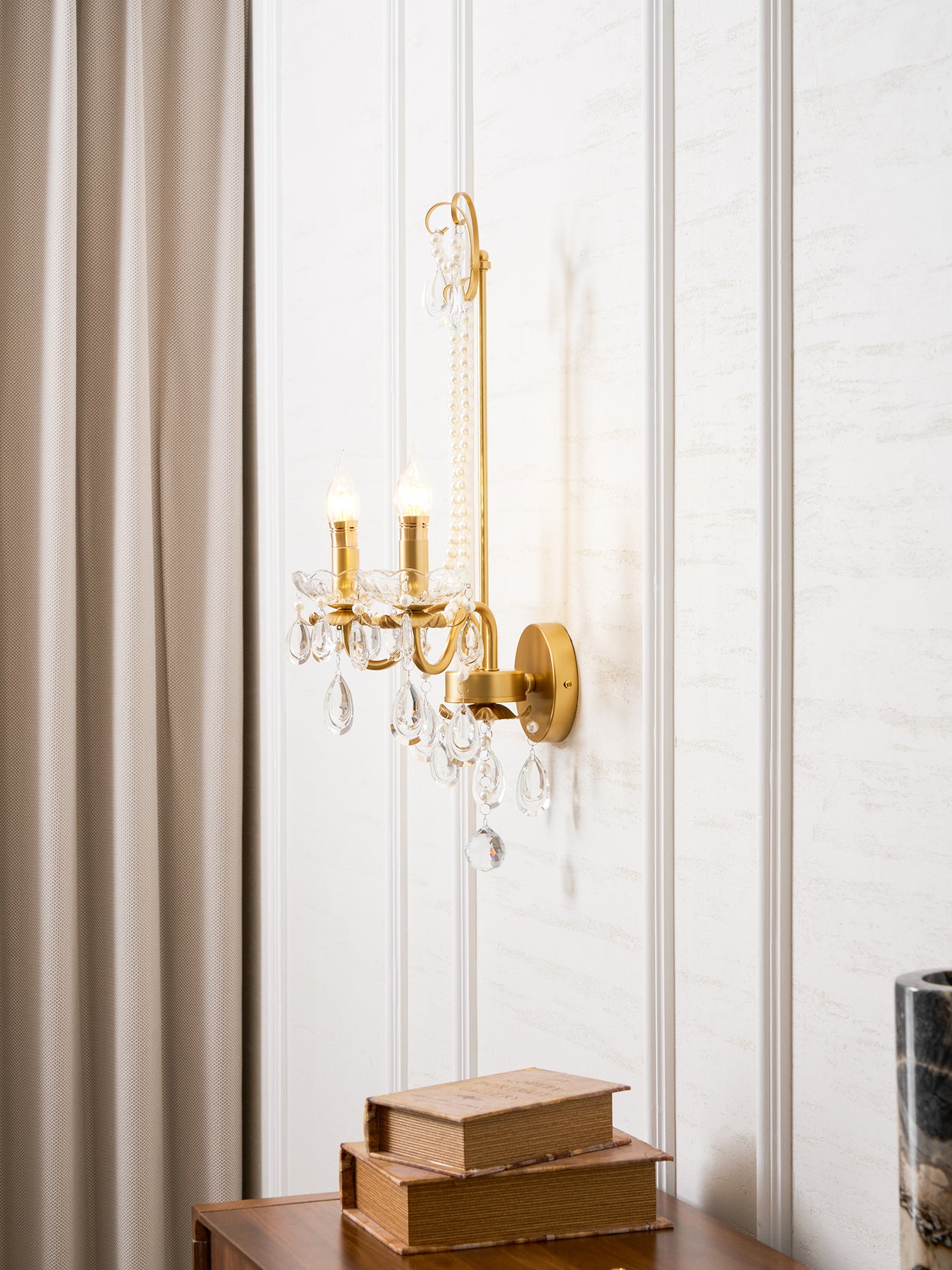 This Crystal Pearl Chain Wall Lamp exudes a classic French vibe with its refined details. Featuring a luxurious crystal material, it's perfect for accentuating a hallway, bedroom, living room, or staircase.