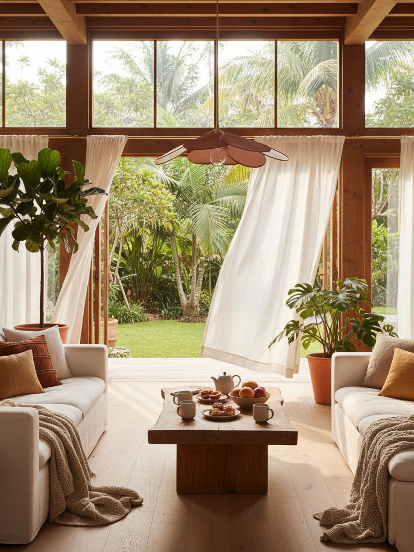 Chandeliers and Pendants: These are the focal points of the living room, especially in rooms with higher ceilings. To size appropriately, use the room dimension formula and ensure the fixture is in scale with the room’s layout. A general rule is to ensure there is at least 7 feet of clearance between the fixture and the floor.
