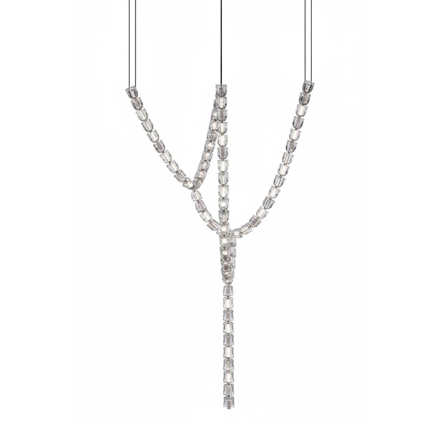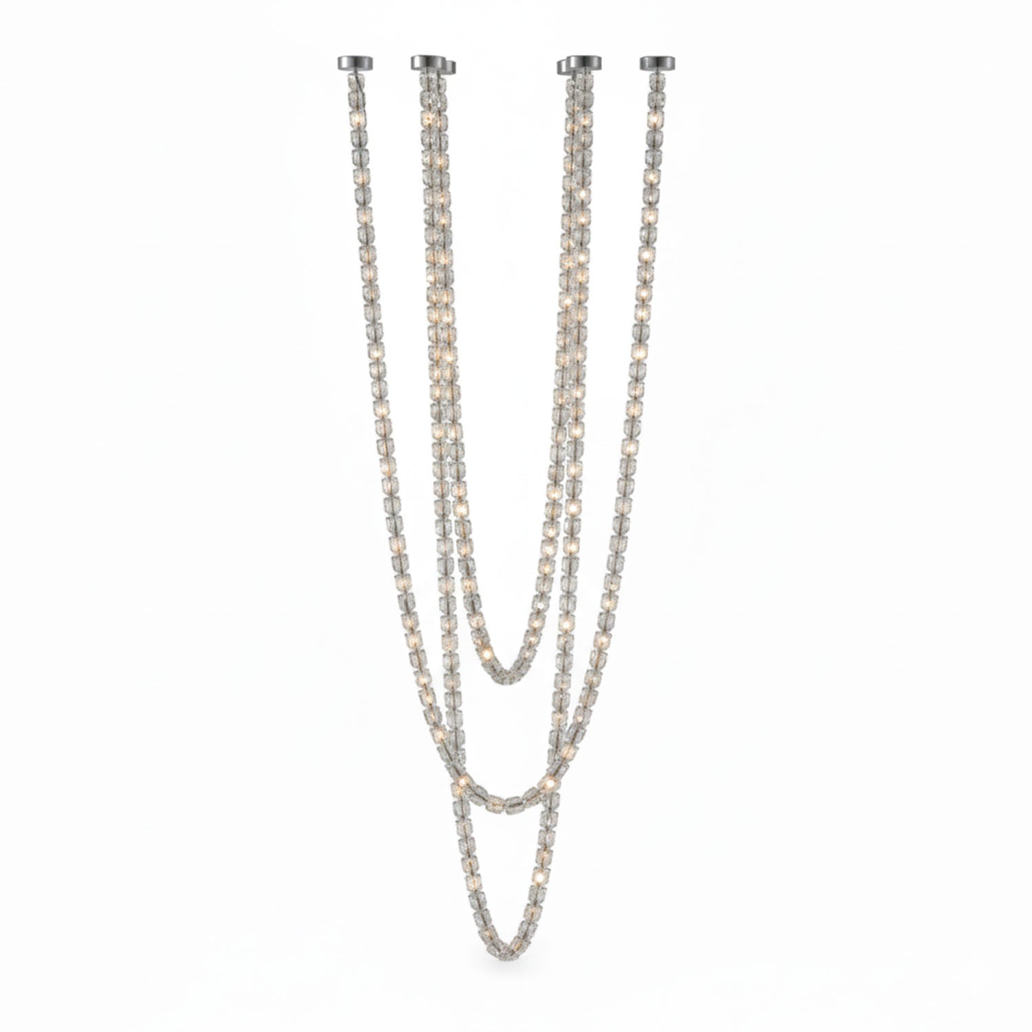 A modern statement inspired by the fluidity of fine jewelry, the Necklace Chandelier drapes