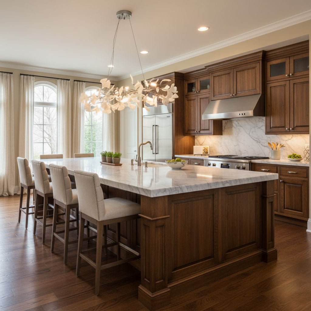 - Multiple Pendants: For long rectangular tables, two or three smaller pendants spaced evenly above the table create a balanced look.