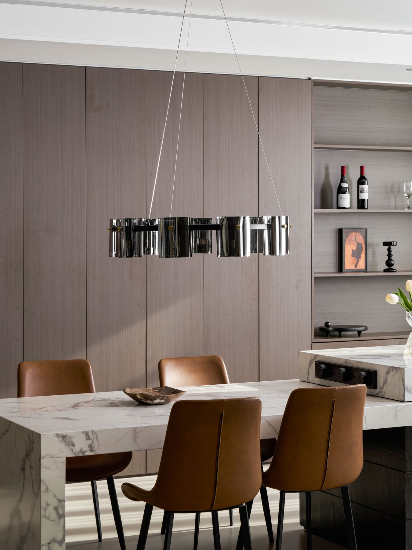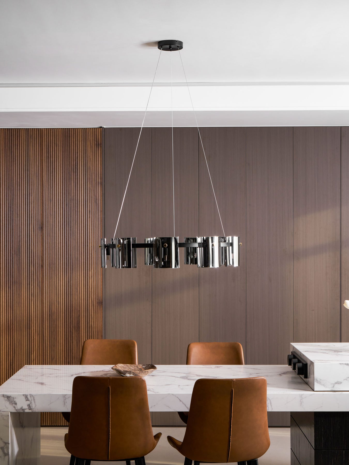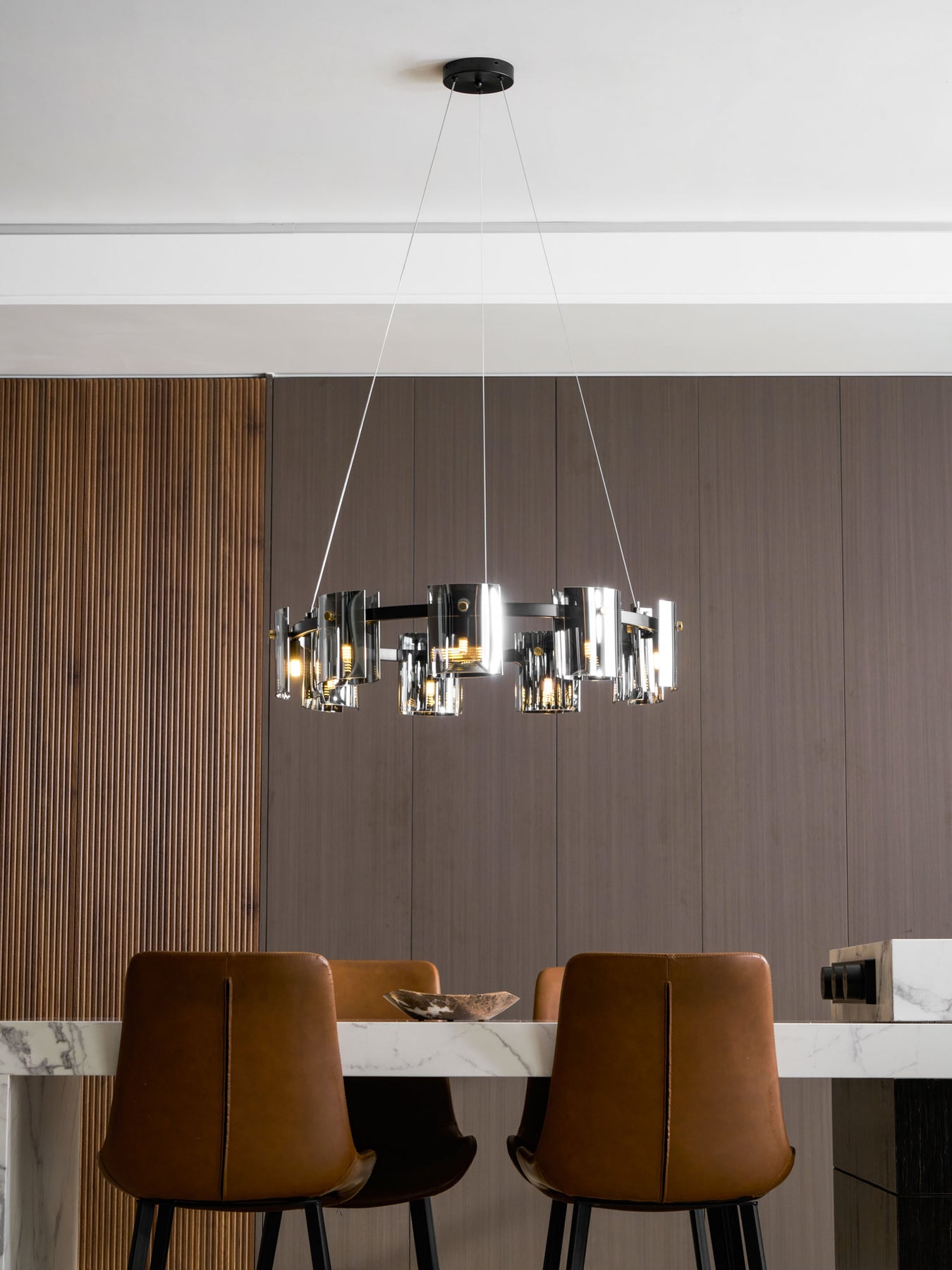- Multiple Pendants: For long rectangular tables, two or three smaller pendants spaced evenly above the table create a balanced look.