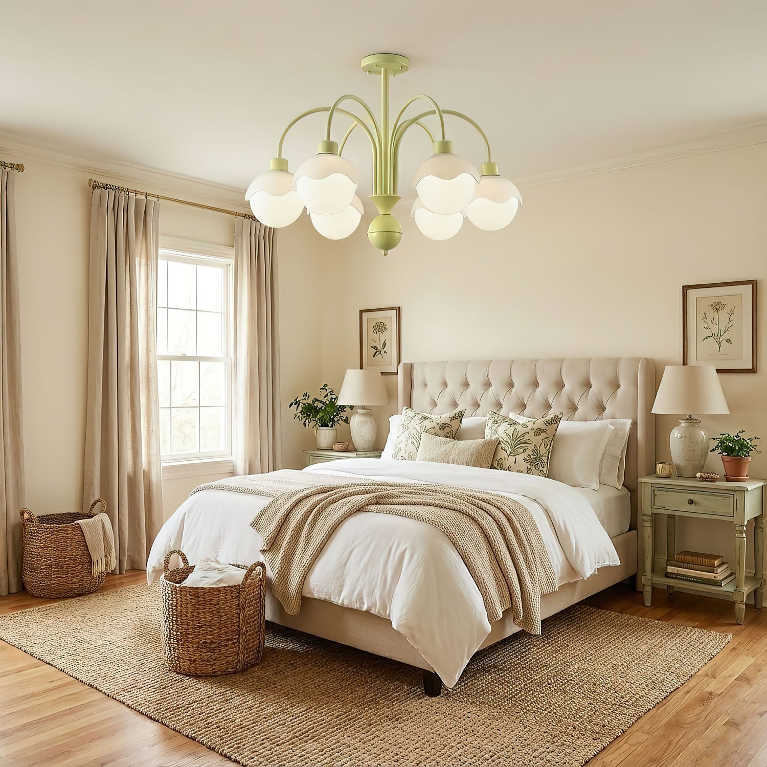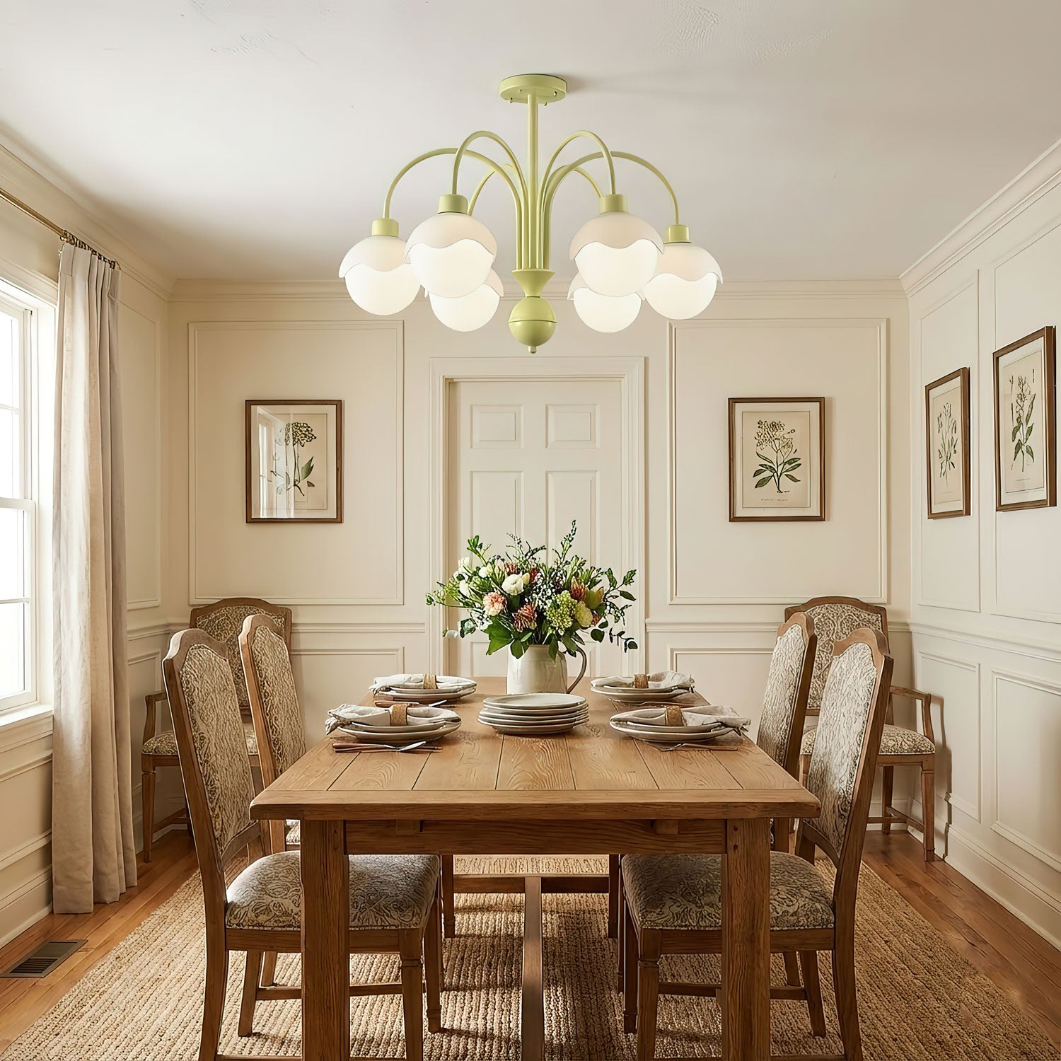 The Creamy Lychee Chandelier features a unique combination of creamy lychee and chandelier design, creating a light and airy atmosphere perfect for any room. Its creamy lychee and matcha green color evoke a sense of sweetness and freshness in any space. The creamy style blends seamlessly with any aesthetic.