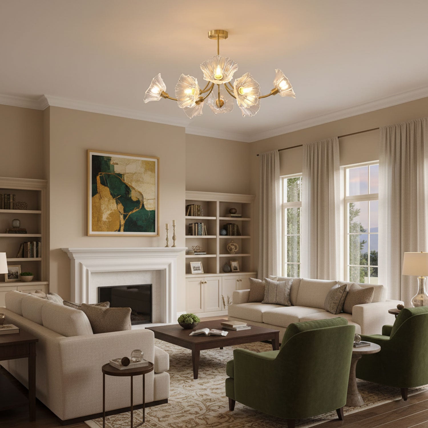 • Chandeliers and Pendants: These are the focal points of the living room, especially in rooms with higher ceilings. To size appropriately, use the room dimension formula and ensure the fixture is in scale with the room’s layout. A general rule is to ensure there is at least 7 feet of clearance between the fixture and the floor.