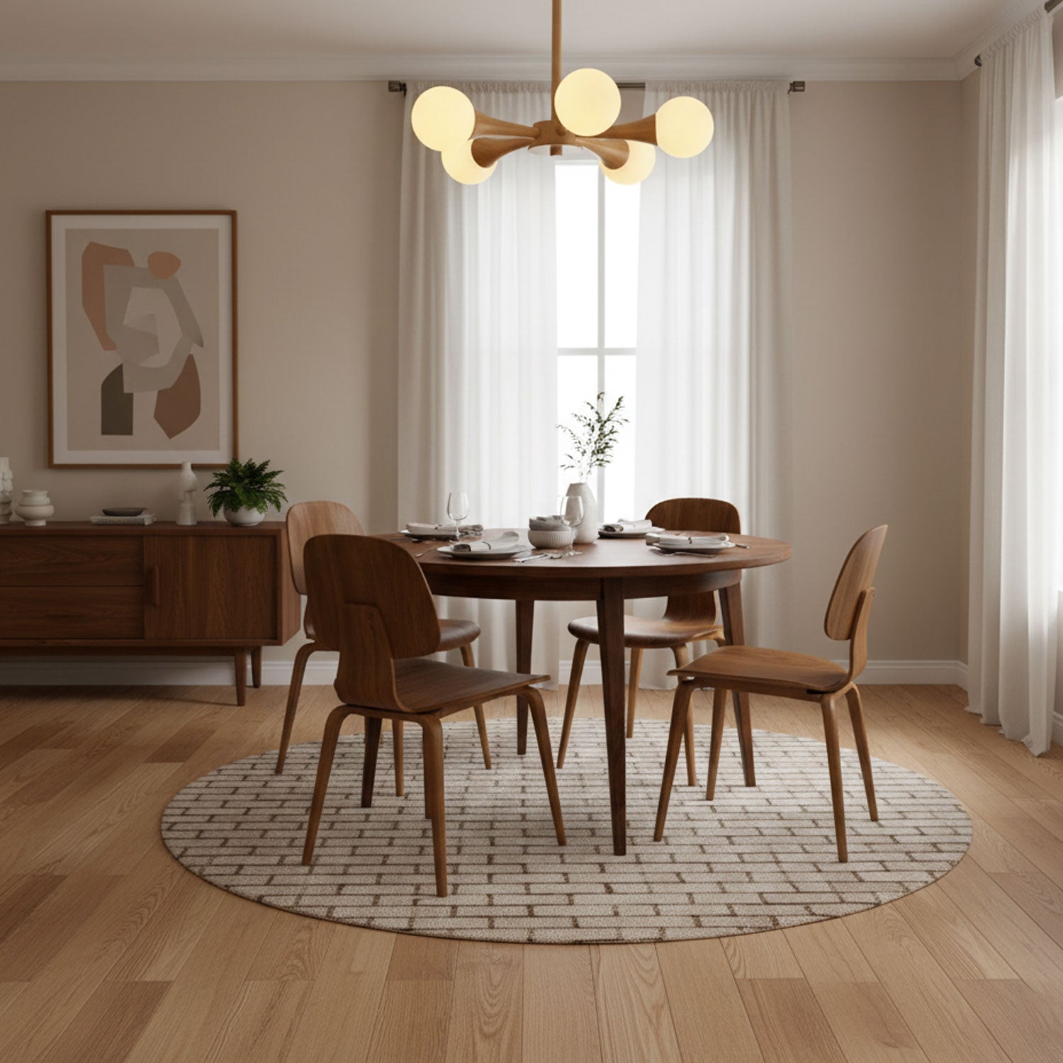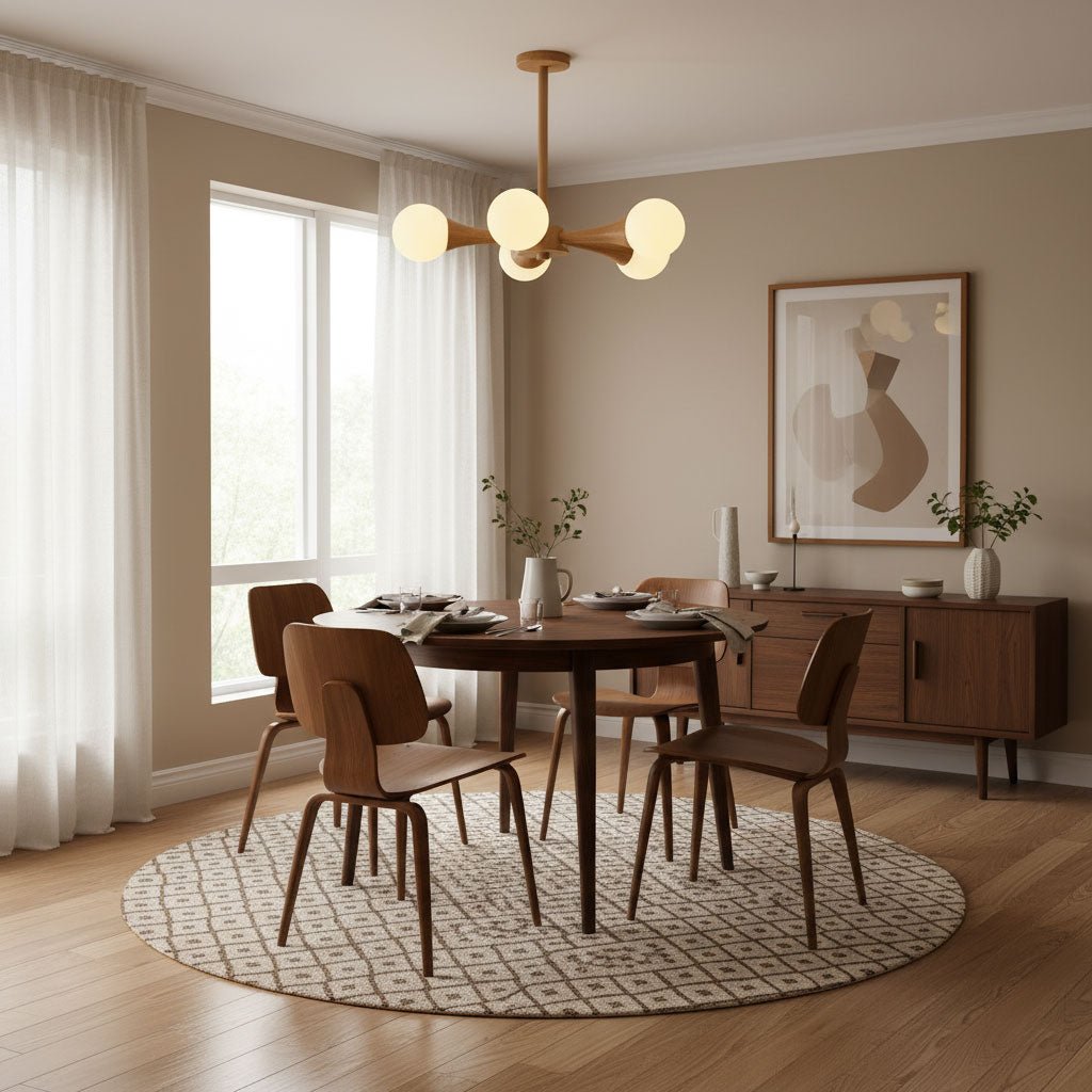 • Multiple Pendants: For long rectangular tables, two or three smaller pendants spaced evenly above the table create a balanced look.